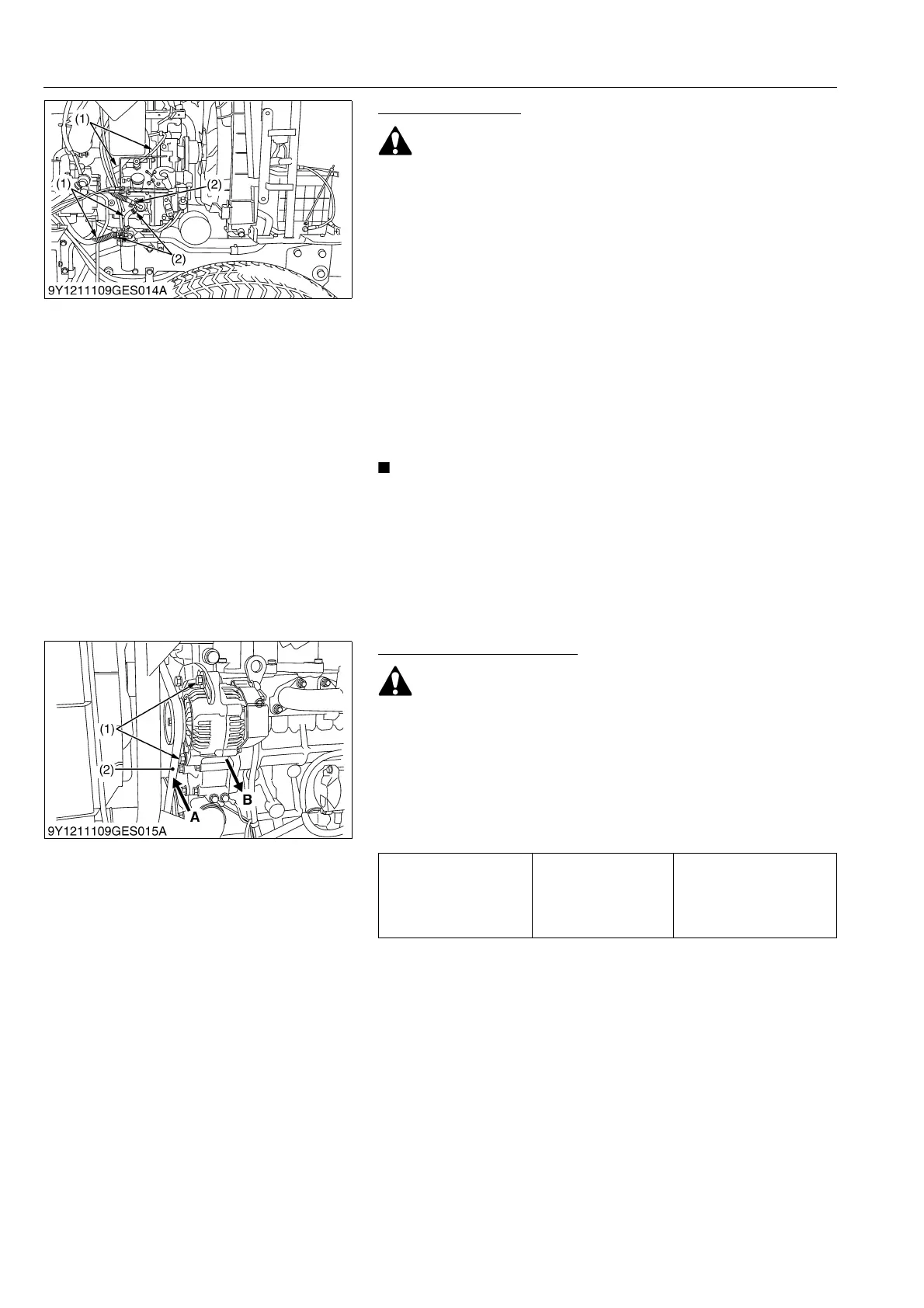 • Be sure to stop engine before checking belt tension.