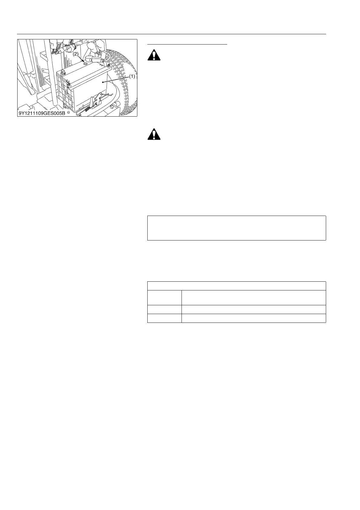 • Never remove the battery cap while the engine is running.