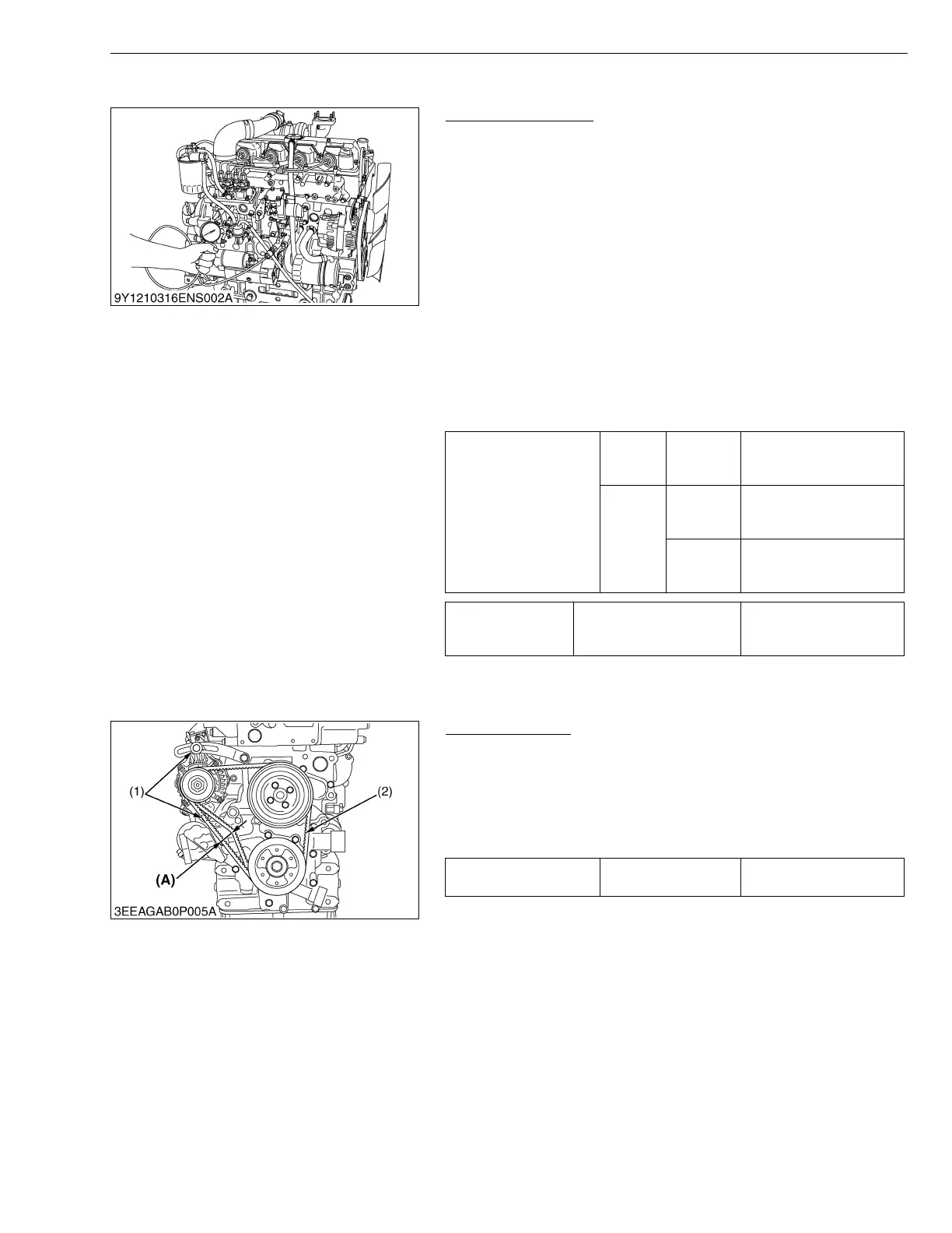 1. Measure the deflection (A), depressing the fan belt (2) halfway