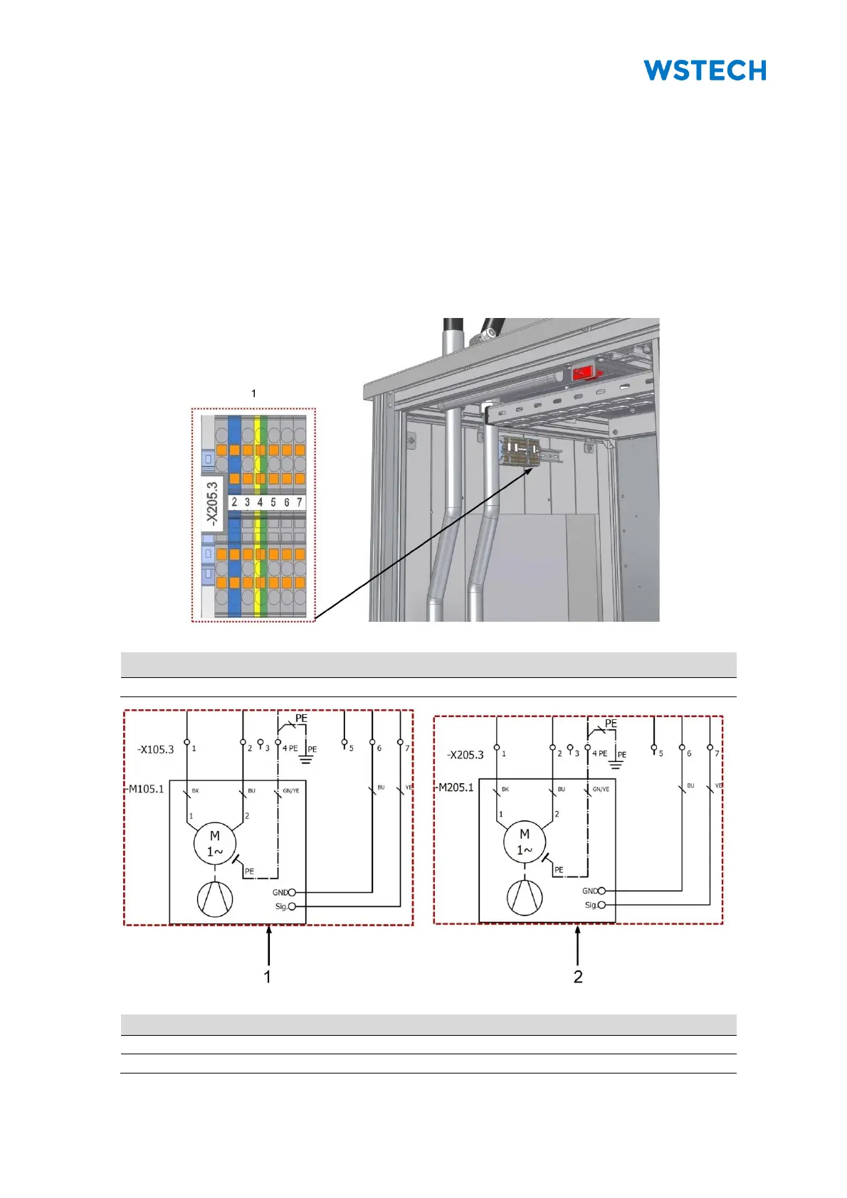 5. Connect the cores to terminal strip (-X105.3) and (-X205.3).