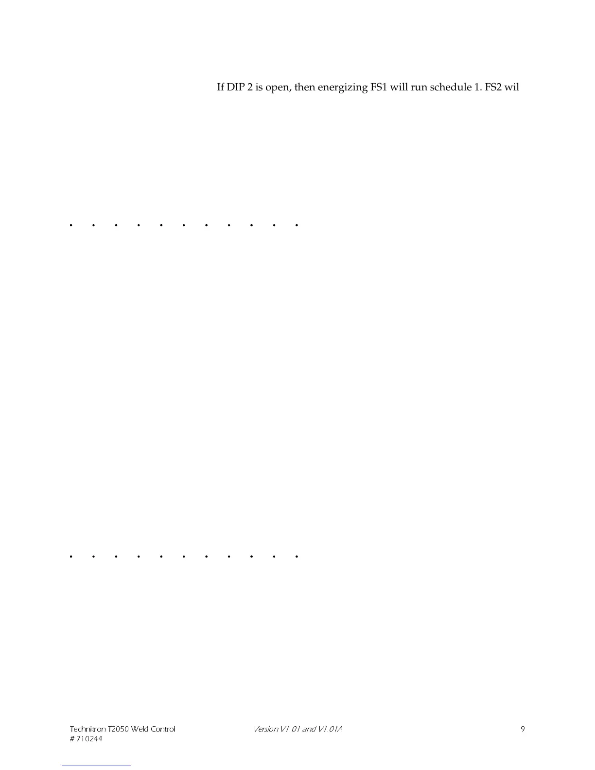 If DIP 2 is open, then energizing FS1 will run schedule 1. FS2 will