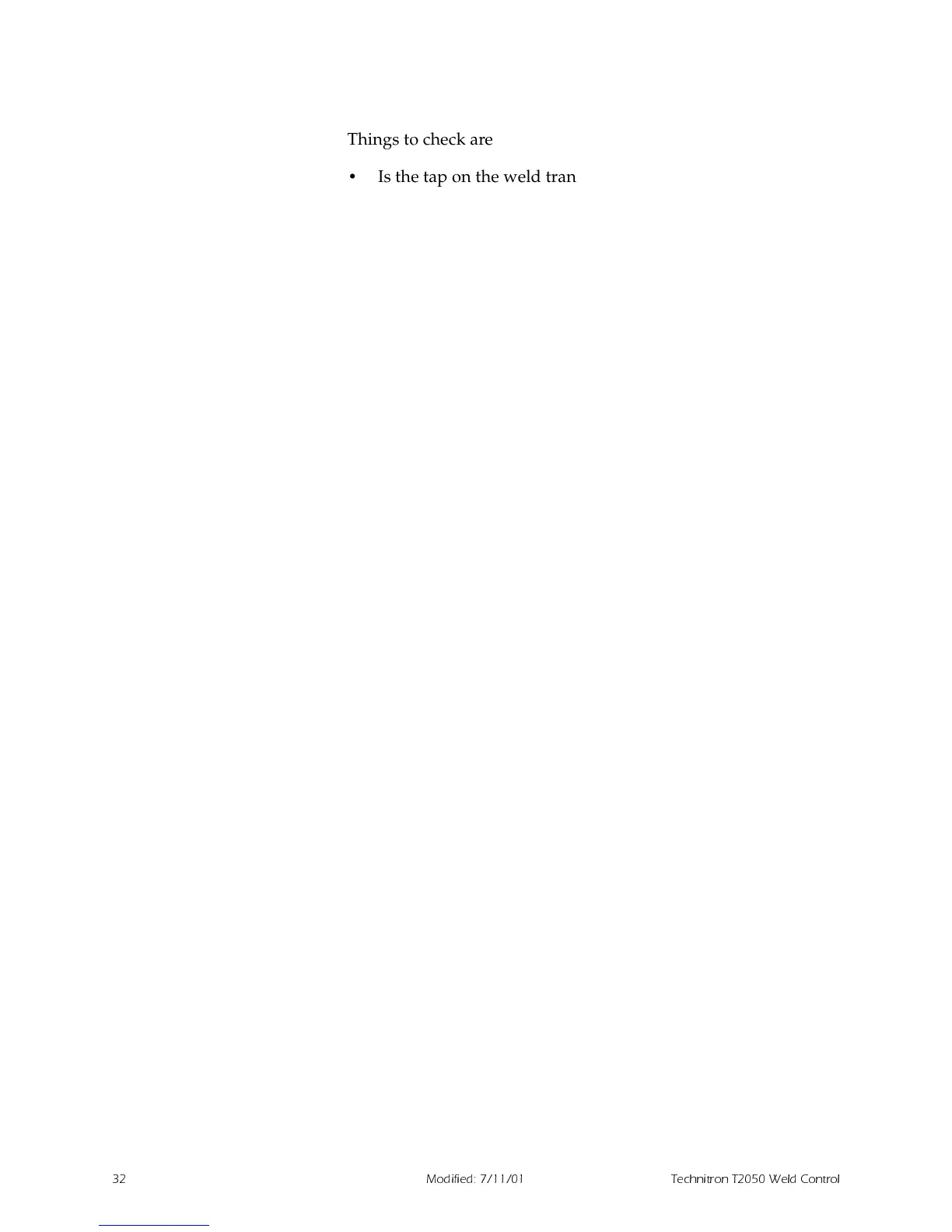 • Is the tap on the weld transformer set to deliver a requested
