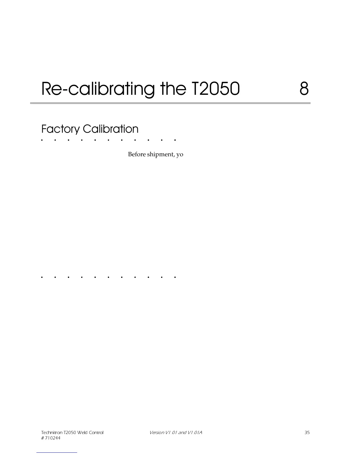 Before shipment, your T2050 control was tested and calibrated by
