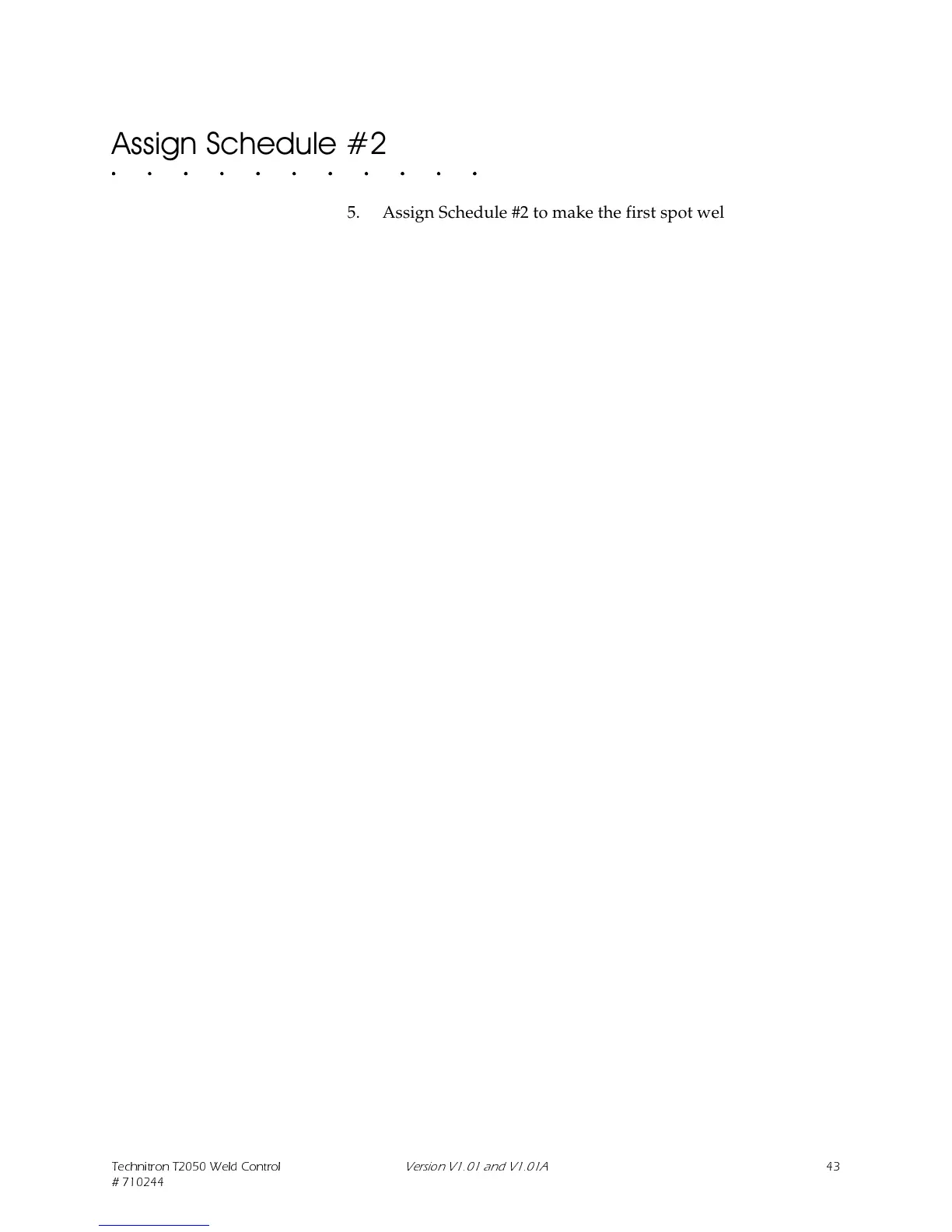 5. Assign Schedule #2 to make the first spot weld: