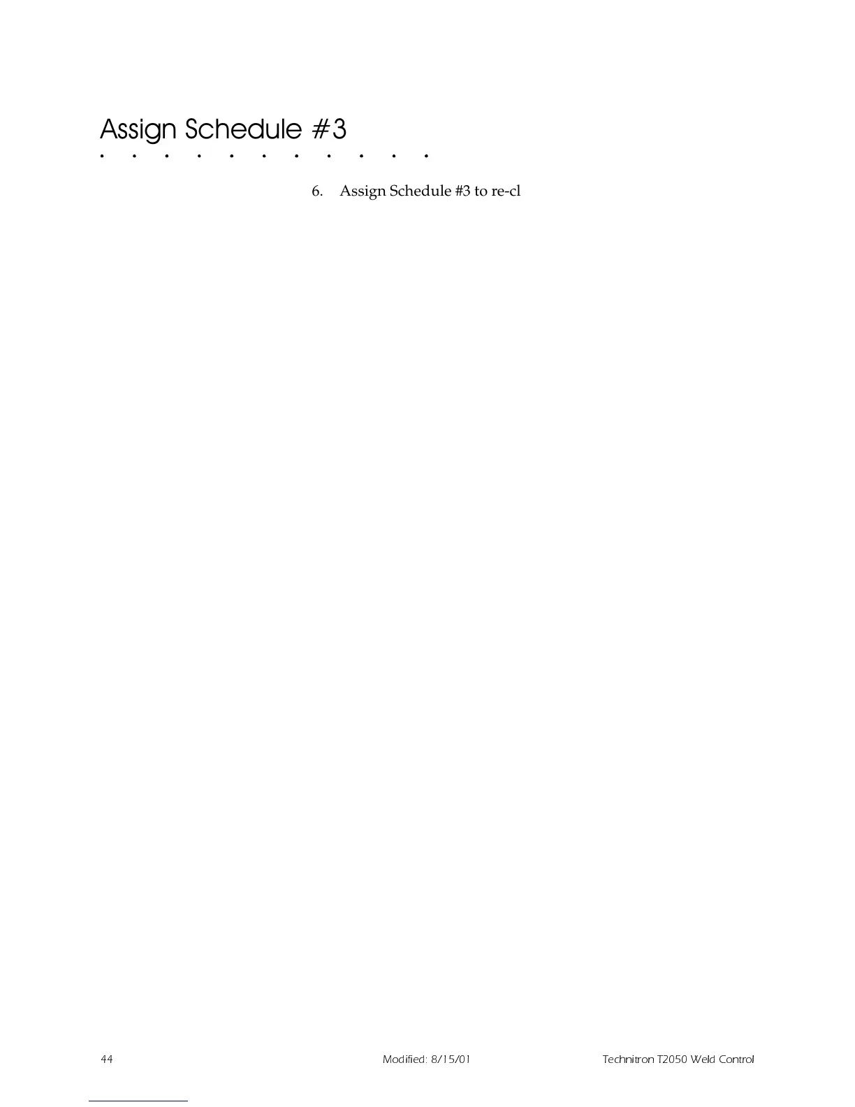 6. Assign Schedule #3 to re-clamp the parts with SV1 before the