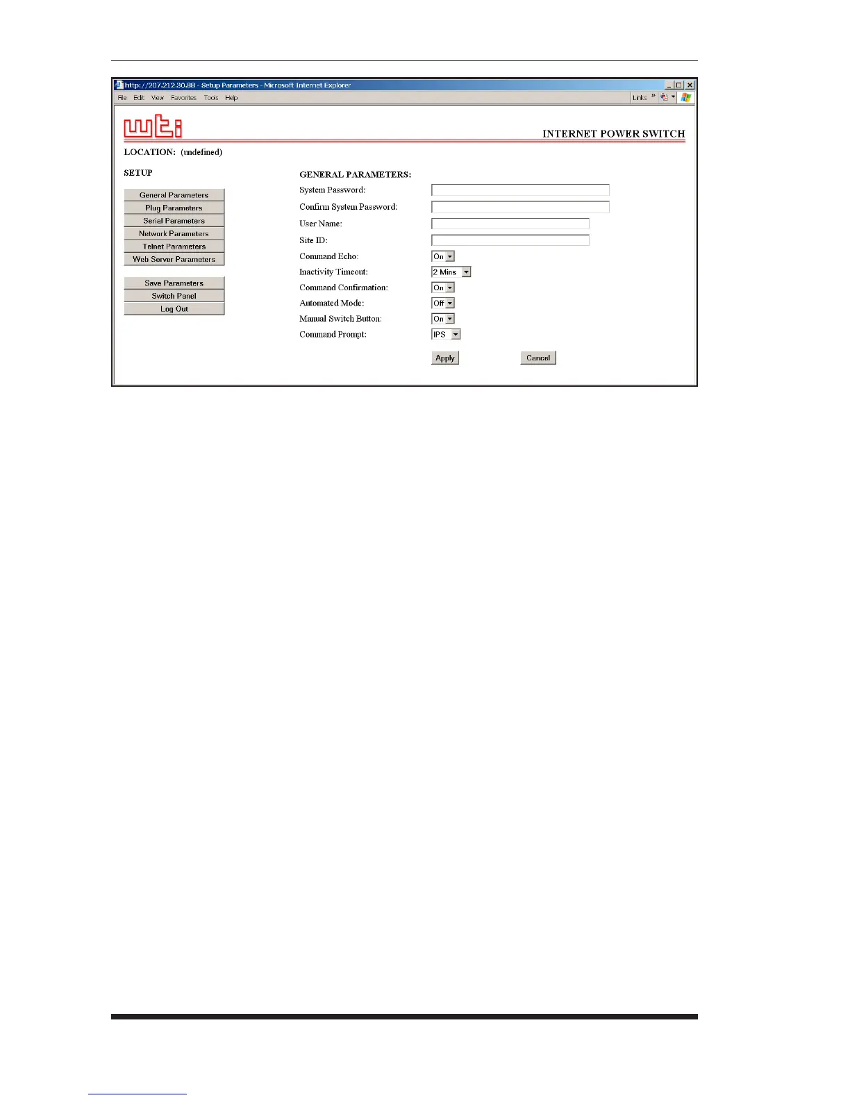 Figure 5.3: General Parameters Menu - Web Browser Interface
