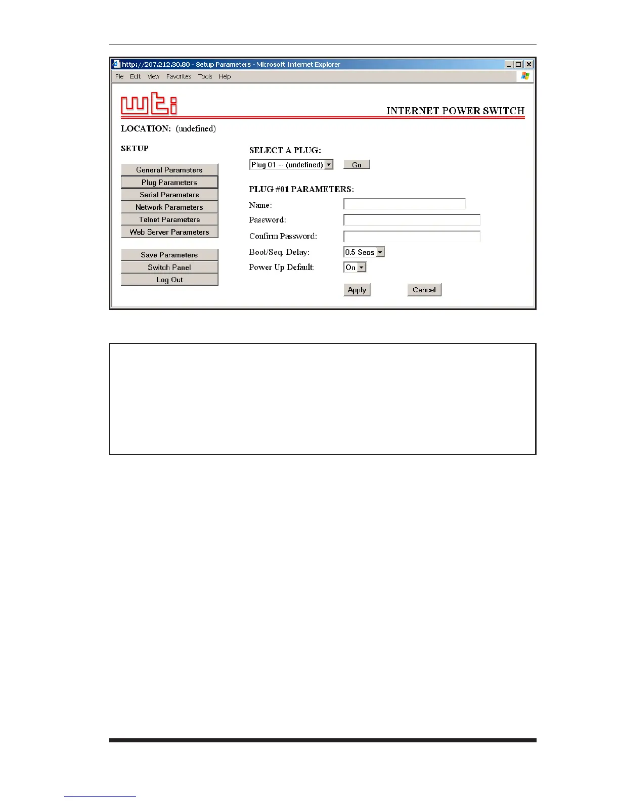The Plug Parameters Menus are used to define Plug Names, Plug Passwords,