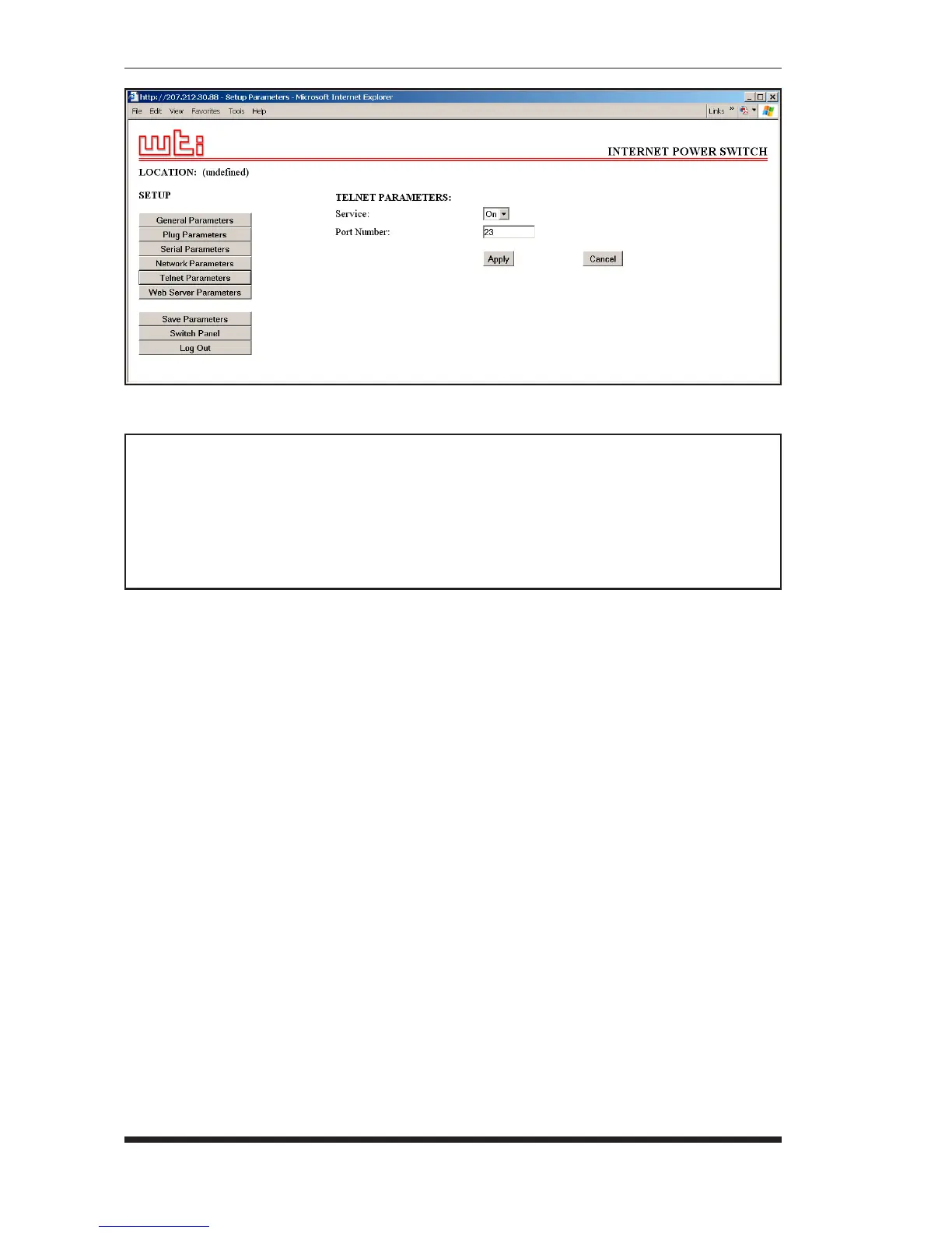 configuration menus, and then click the "Telnet Parameters" button to