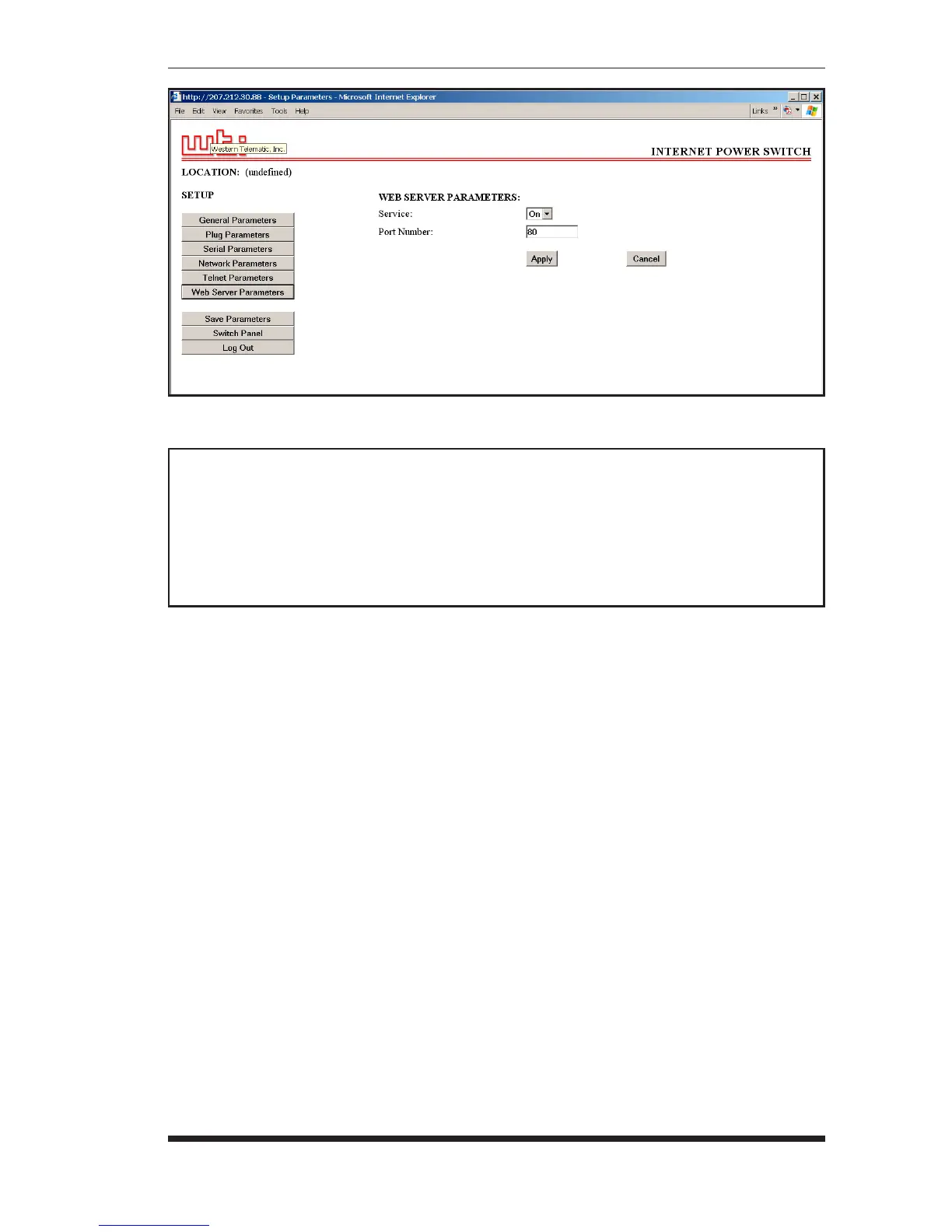 configuration menus, and then click the Web Server Parameters button.