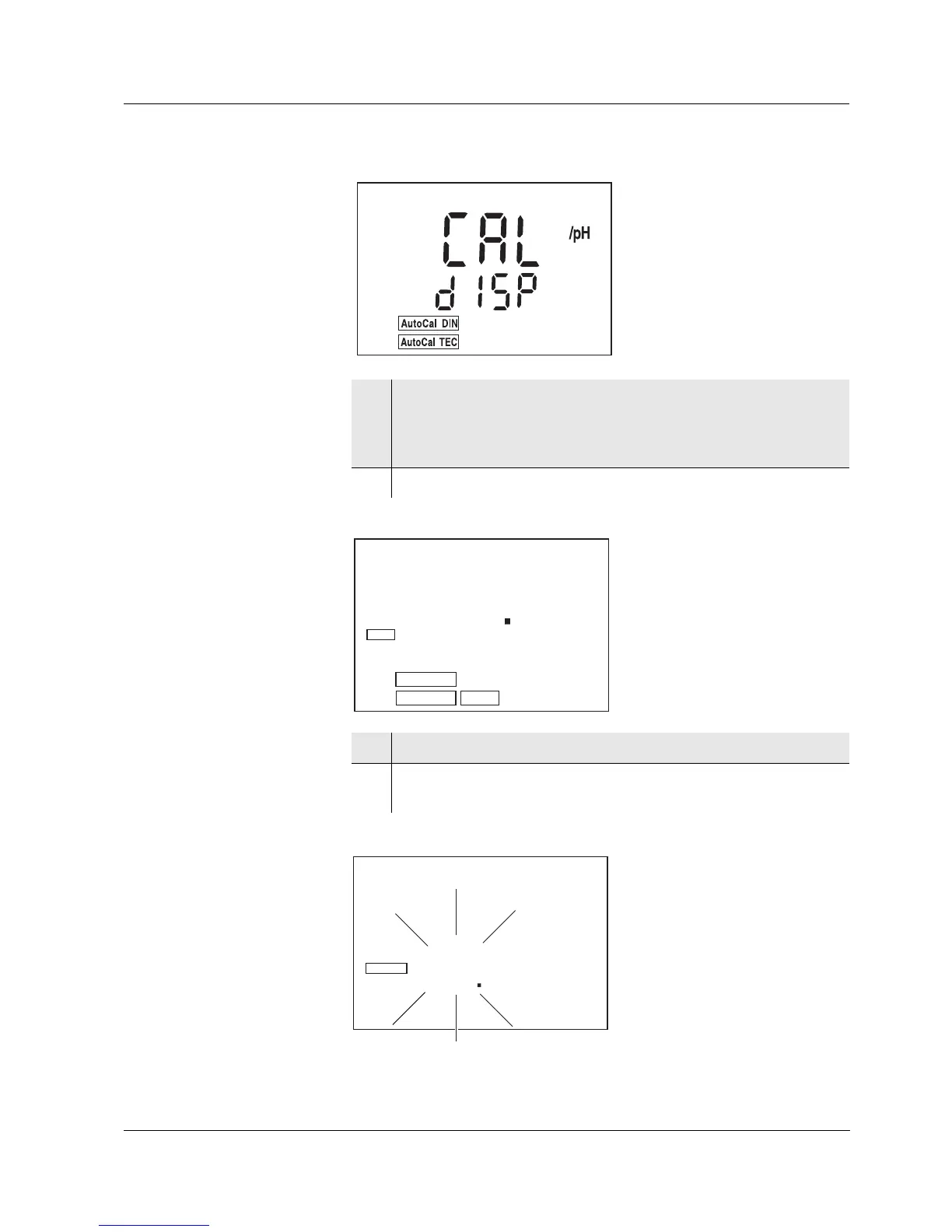 6 Select the required display during the pH calibration with