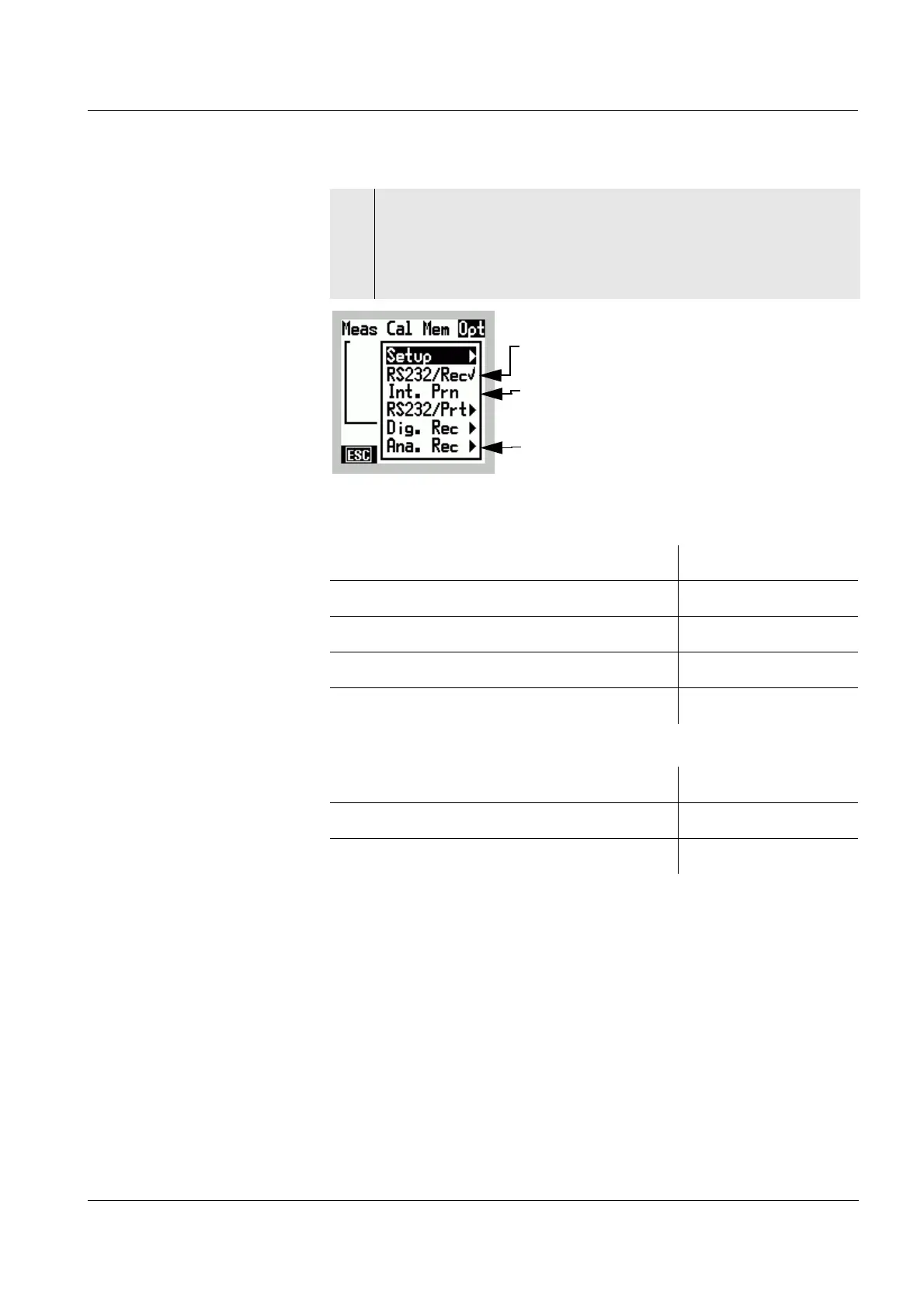 The last main menu used, e.g. Opt, is opened and the