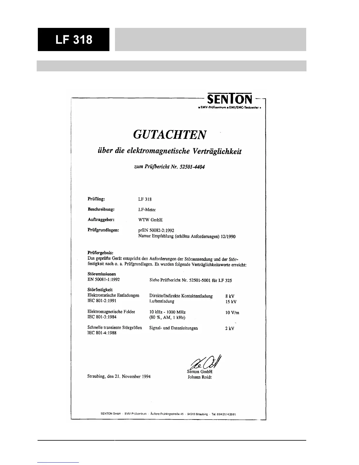 Prüfzertifikat EMV
