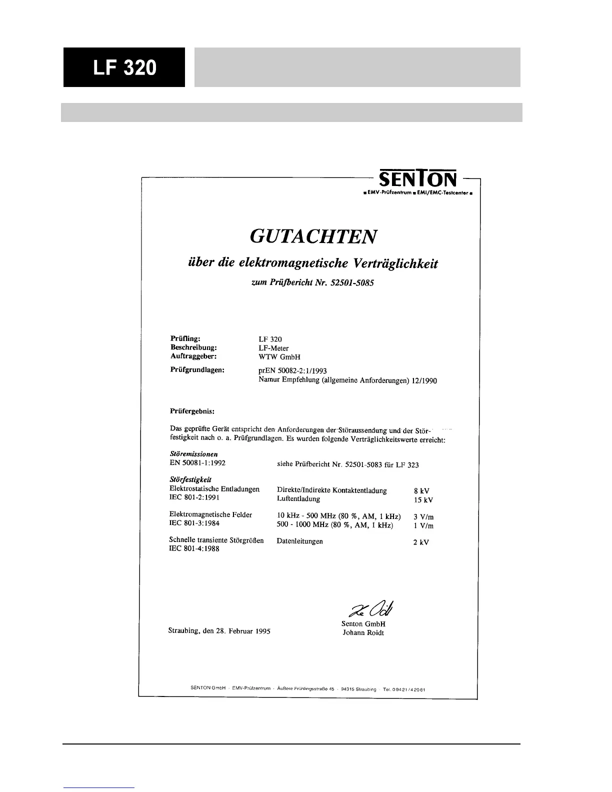 Prüfzertifikat EMV Test certificate EMC