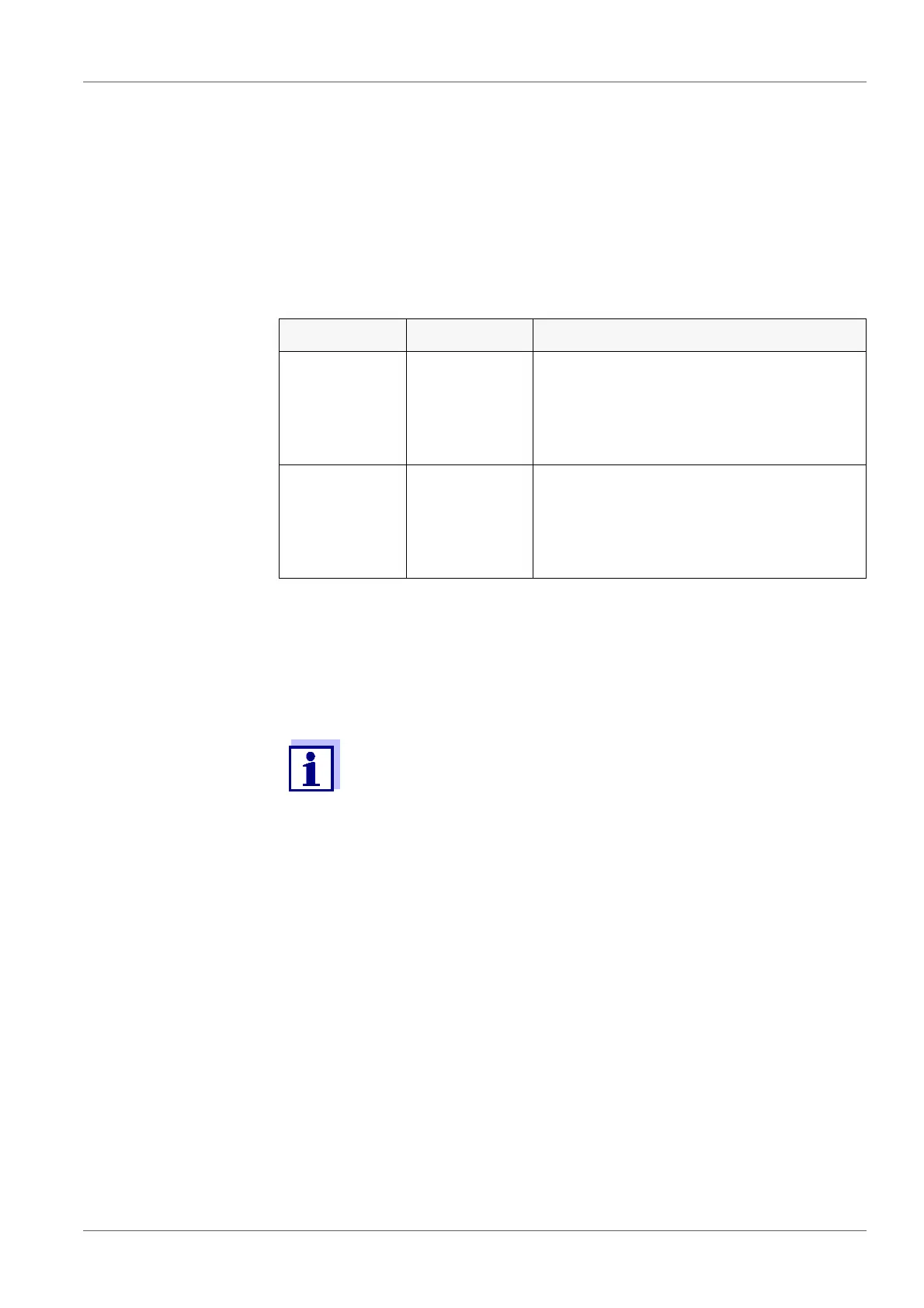 The following table shows which data are transmitted to the interface in which