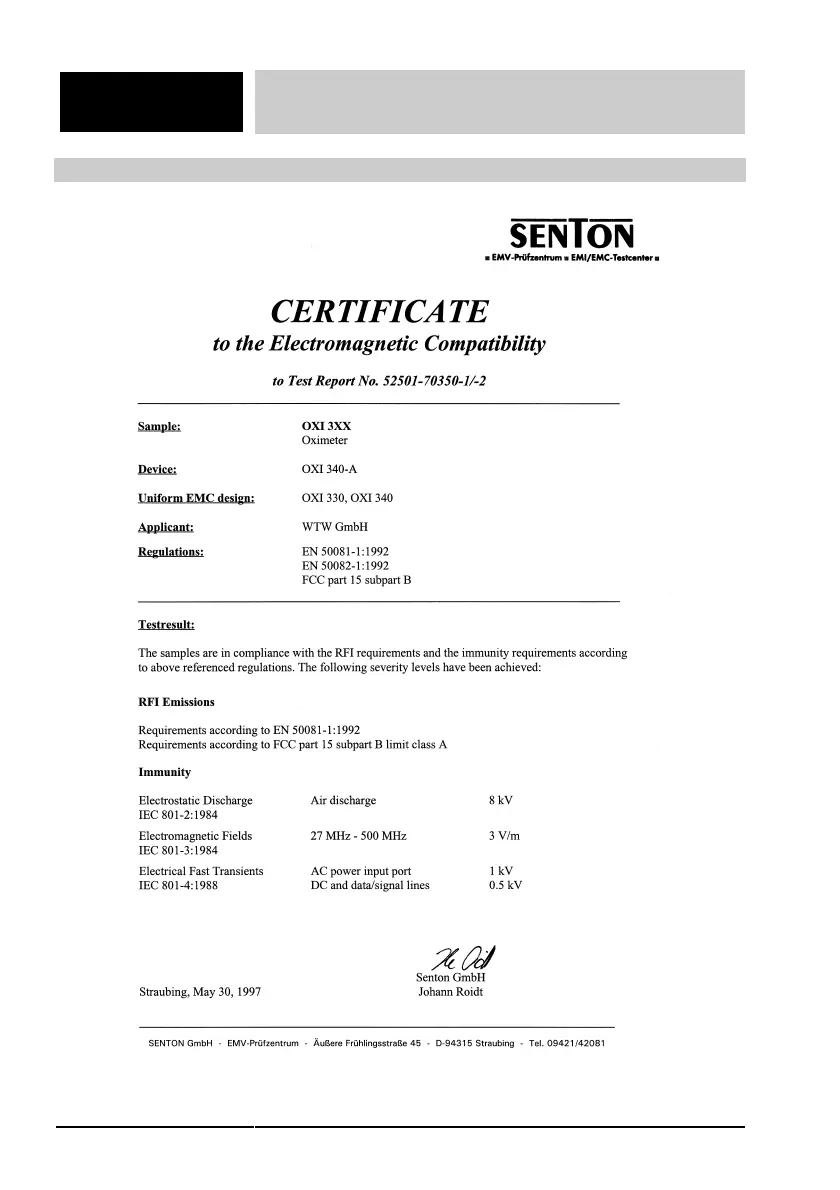 wtw OxiCal-SL - Test Certificate EMC