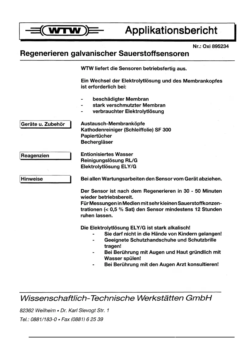 wtw OxiCal-SL - Galvanic Oxygen Sensor Regeneration Report