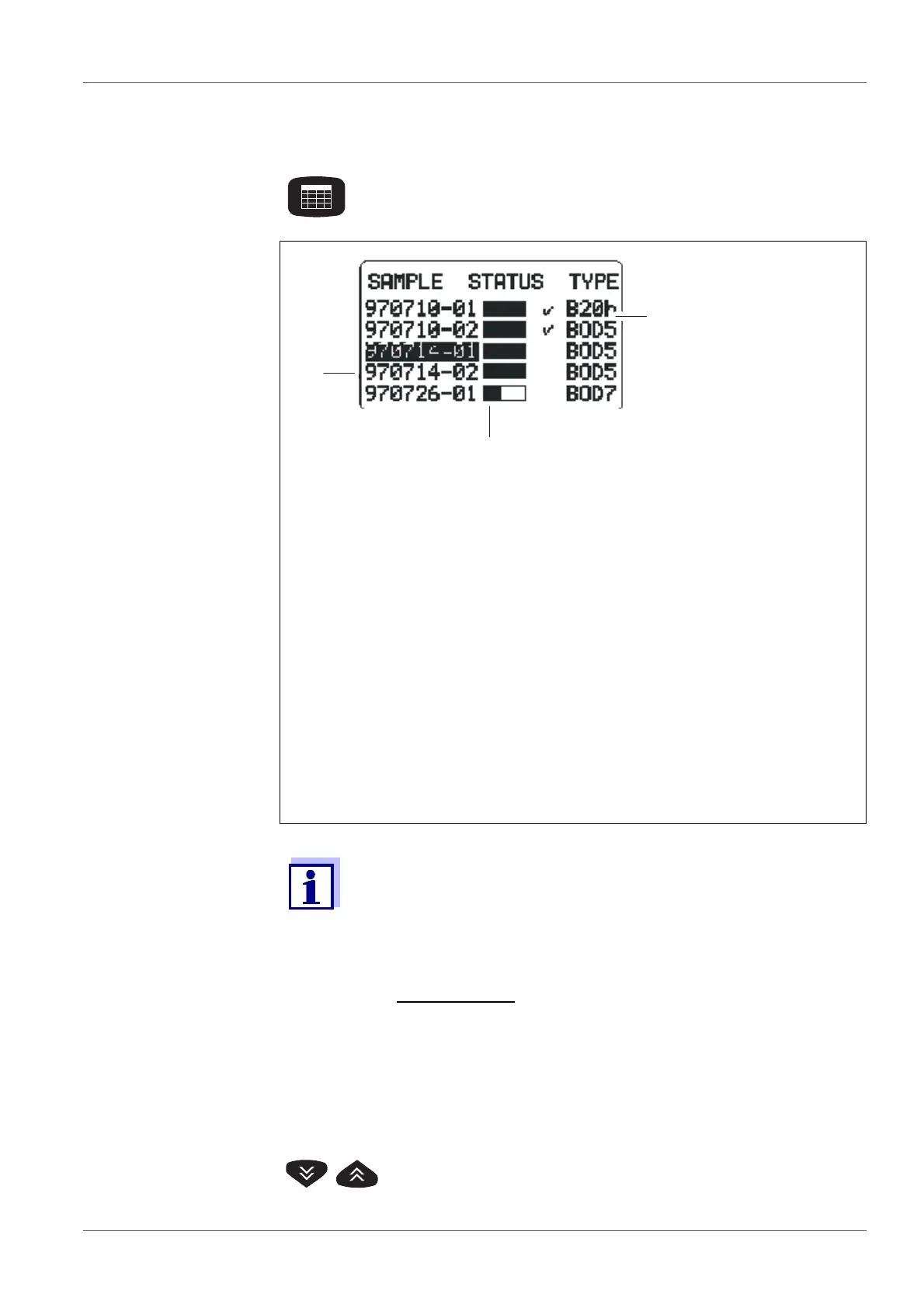 A list of samples appears in the display (if samples are avail-