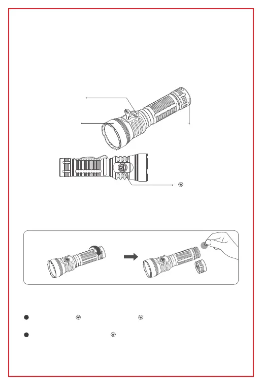 开机/关机: 单击 键点亮手电筒; 按住 键2秒关机。手电筒具有档位记忆功