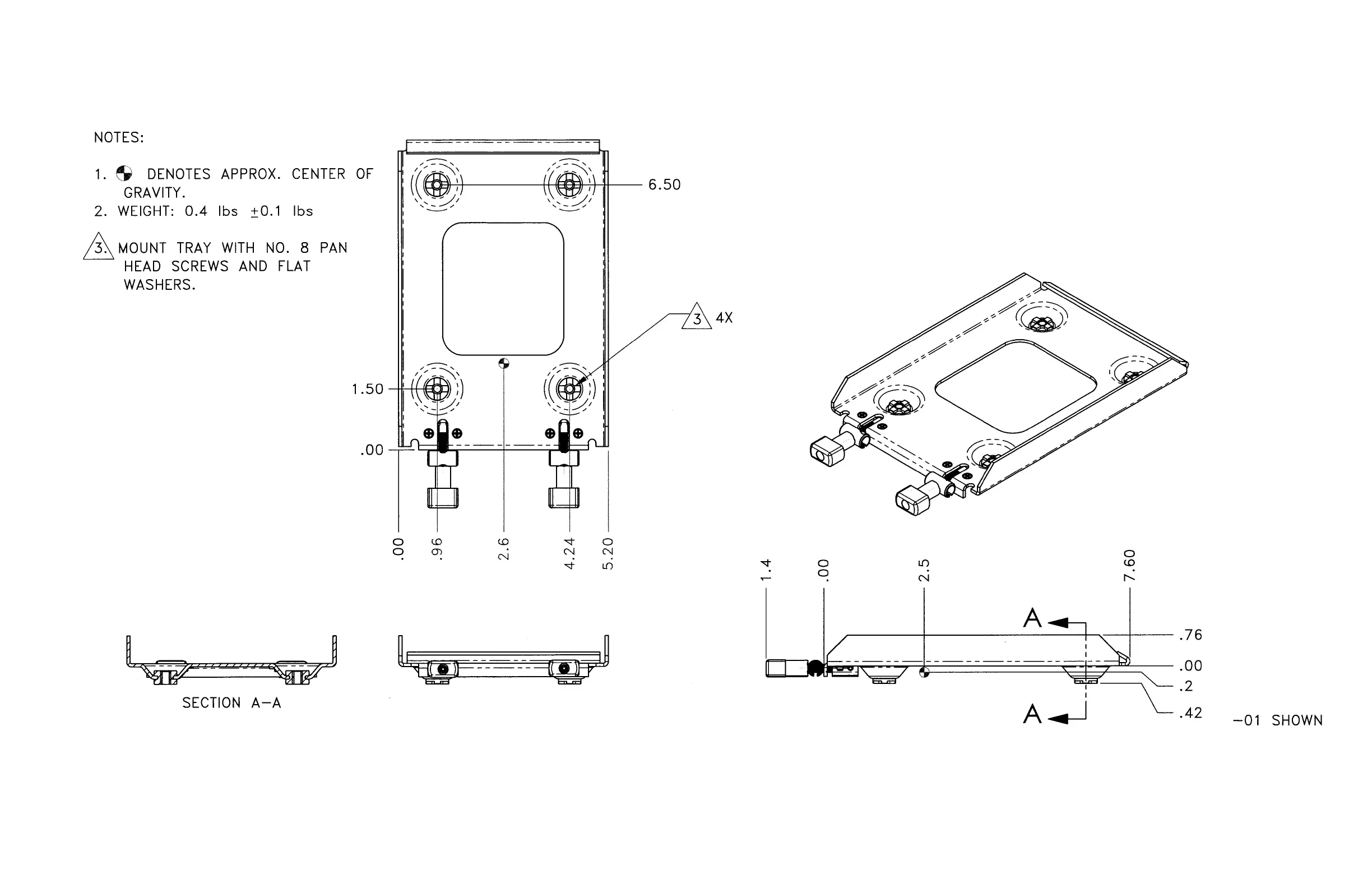 Figure 2-4. RT-2000 Envelope Drawing, Mounting Tray (Sheet 1 of 1) (Dwg. No. 154-049065, Rev. C)