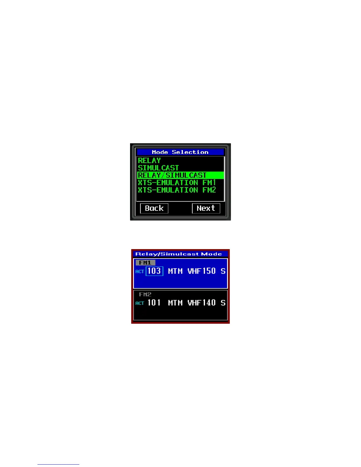 • Select the RELAY/SIMULCAST MODE by high-lighting the option and pressing the ENTER button. The unit
