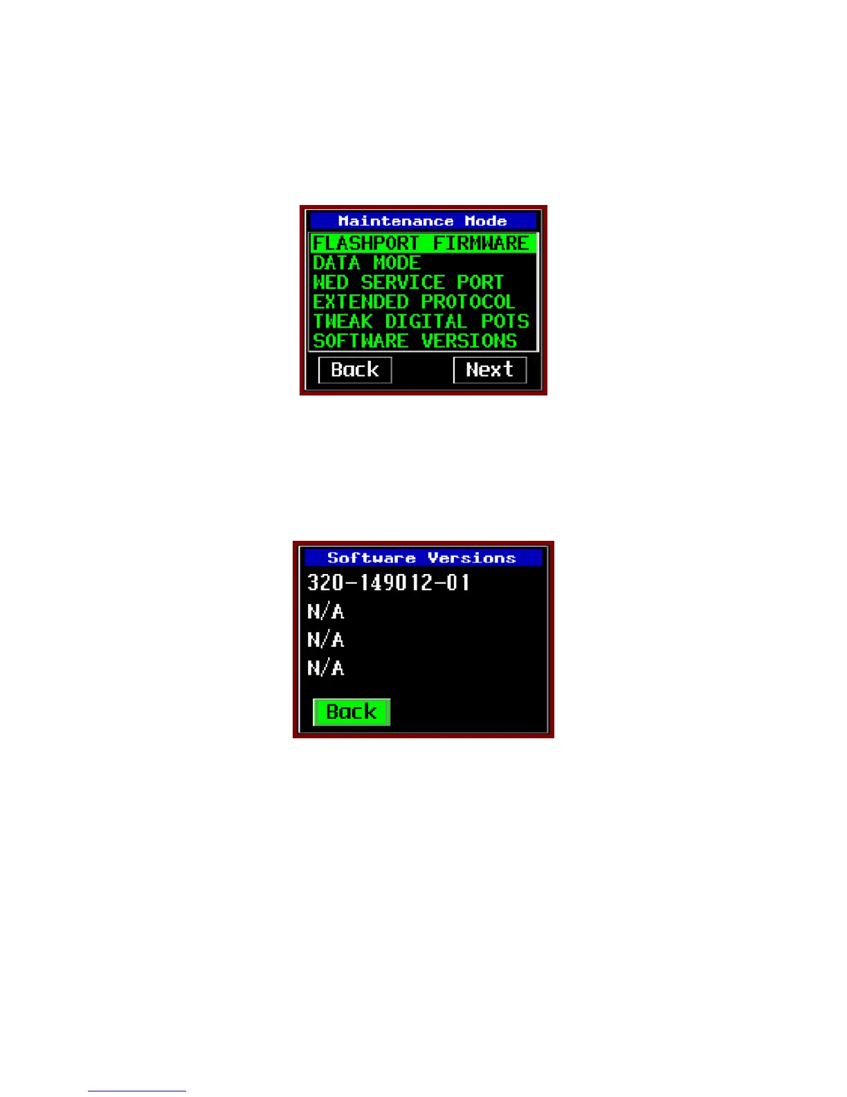 • From the MAINTENANCE MODE page, Highlight the SOFTWARE VERSIONS option and press ENTER.