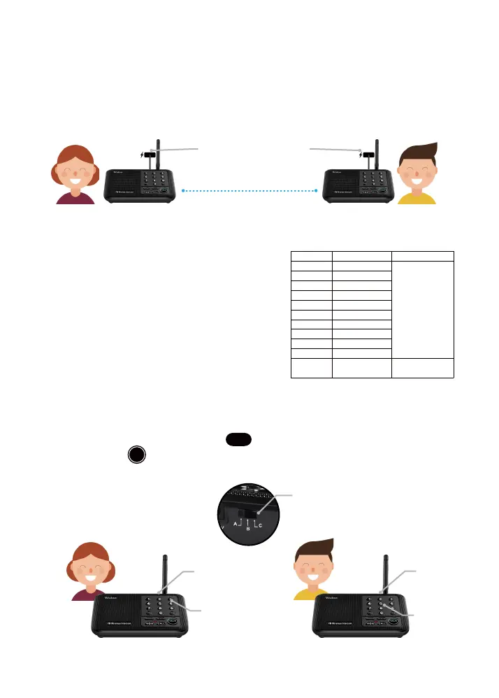 Press and hold any channel number key for 3 seconds to set the channel number of that intercom. To call