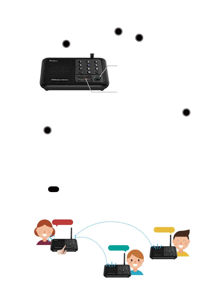 3.When multiple intercom stations are set to the same channel and code, any message sent by any of