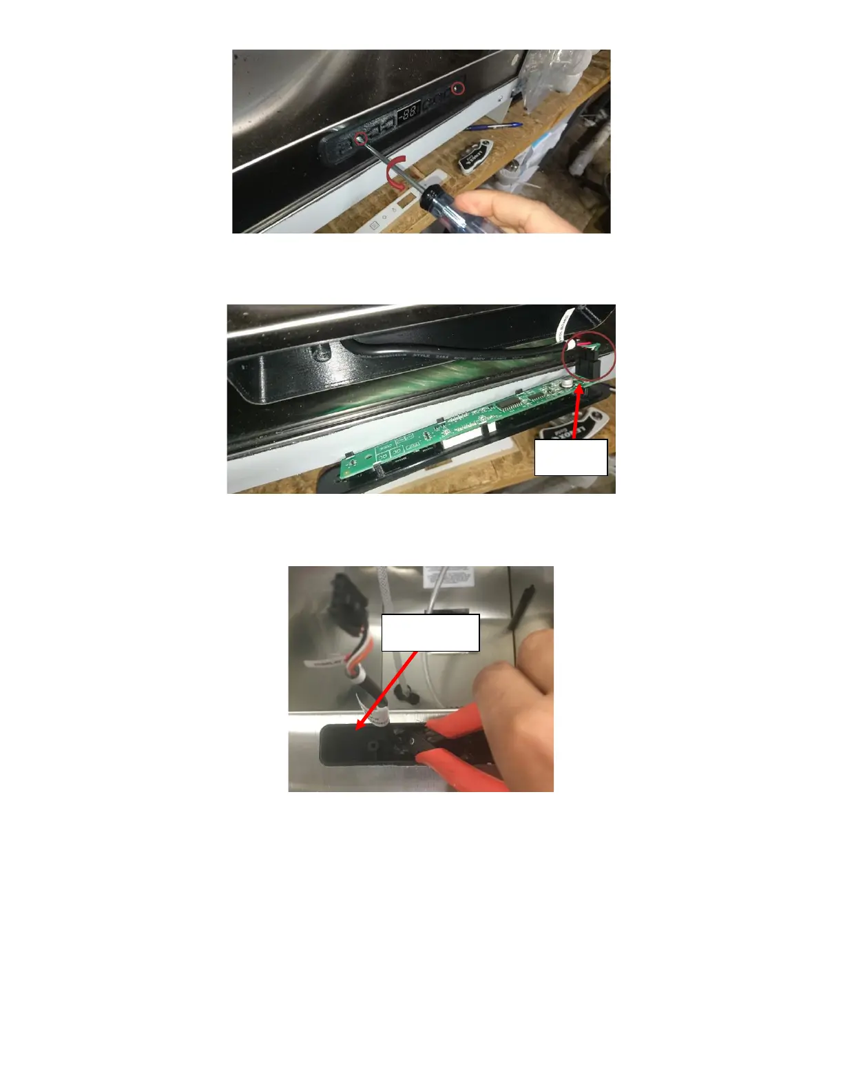 iii. Disconnect the existing UI Harness from the UI Board. Place the UI Board in secure place for reuse if it is