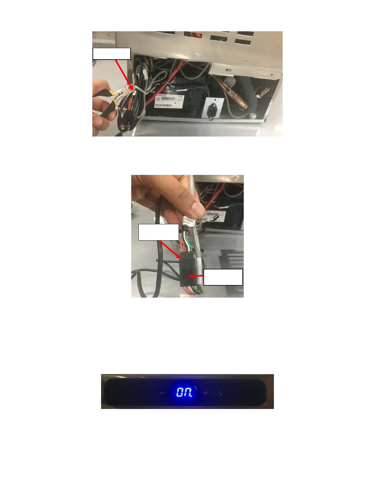 i. Plug the NITCOM Fridge and verify that the UI Harness Replacement was done correctly. The Blue LED