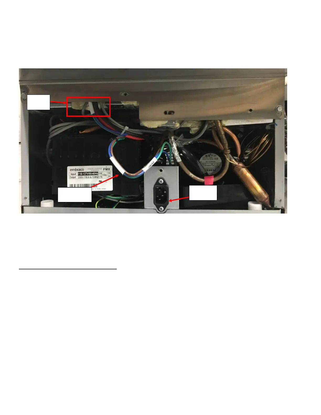e. If the input does not have ~120VAC, remove the Bottom Rear Panel using 5/16-inch Hex Socket Drive to