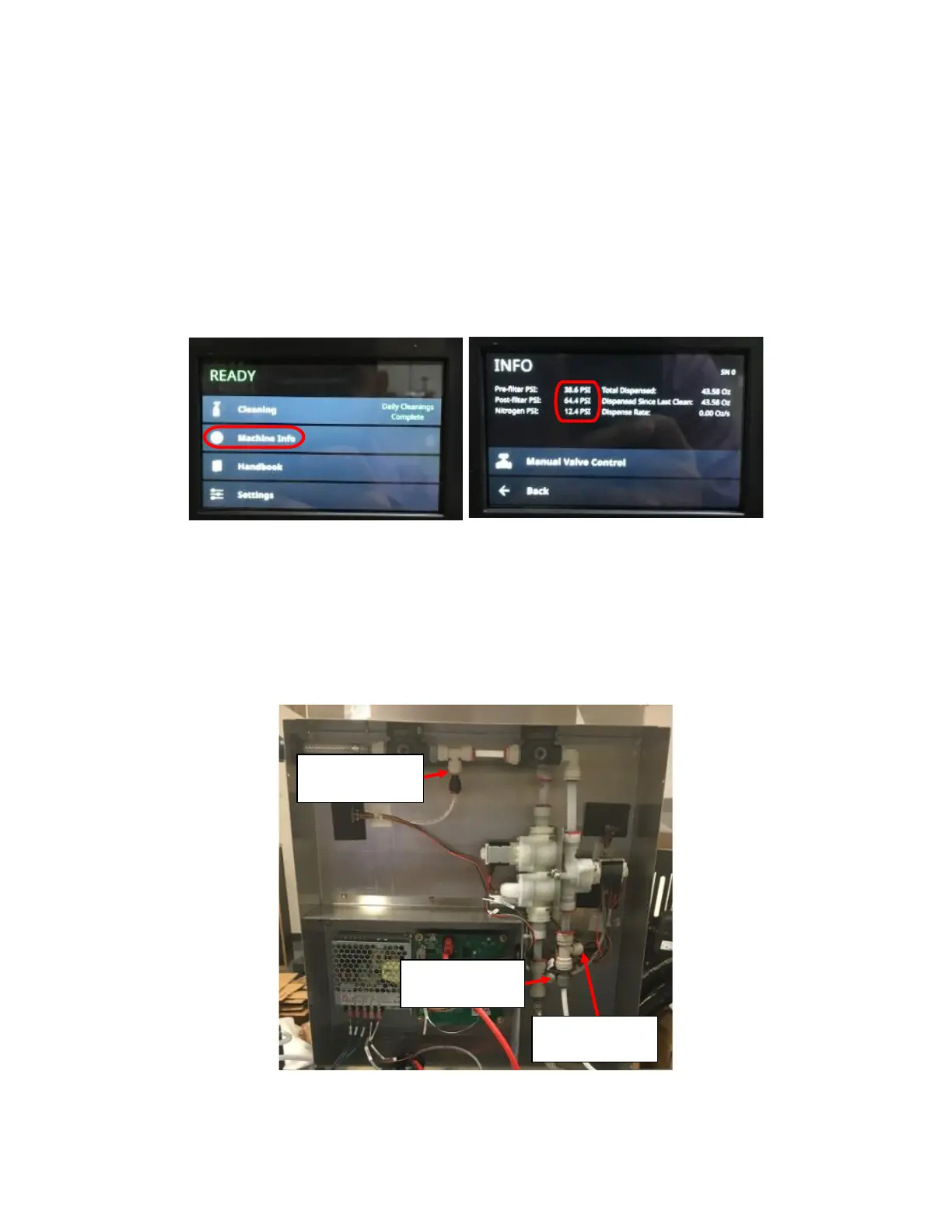 2. Note the pressure reading reported on the Touch Screen. Navigate to Machine Info from the home screen to see the