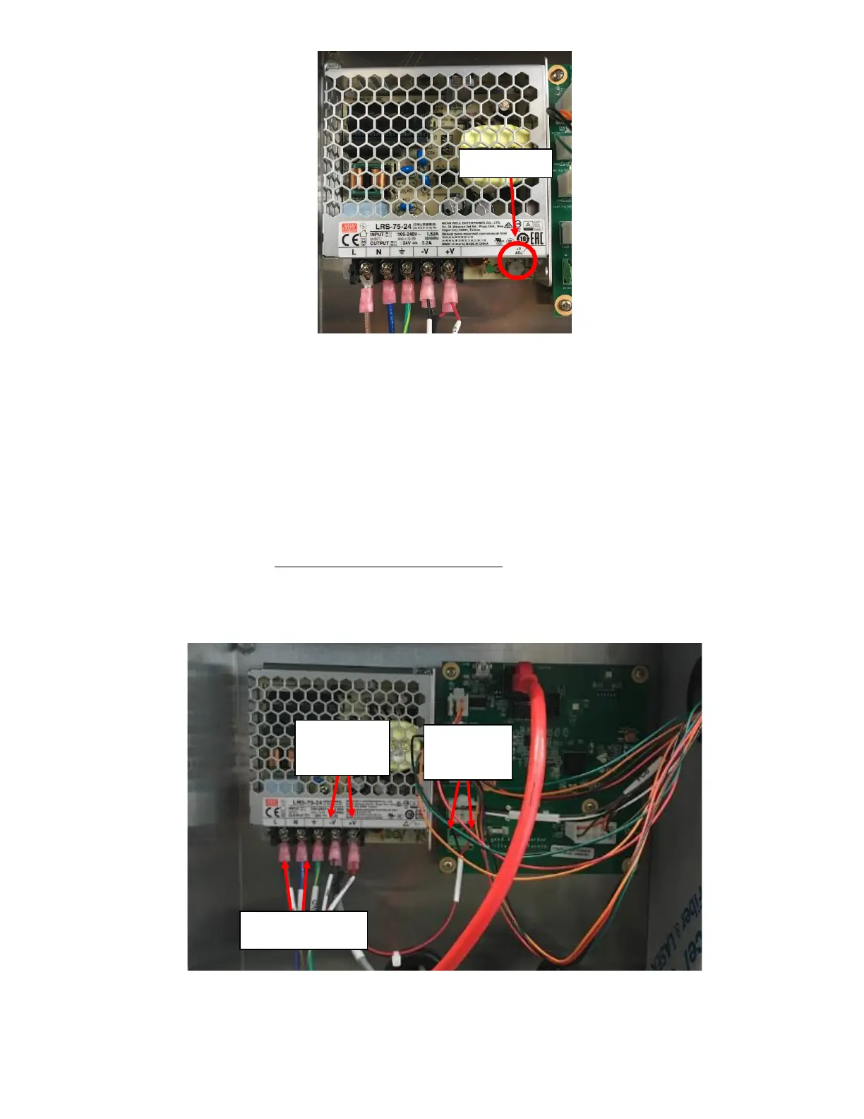 voltage output at the Power Supply (-V and +V) to verify it is at 24VDC. See Figure 15. Follow the harness to the