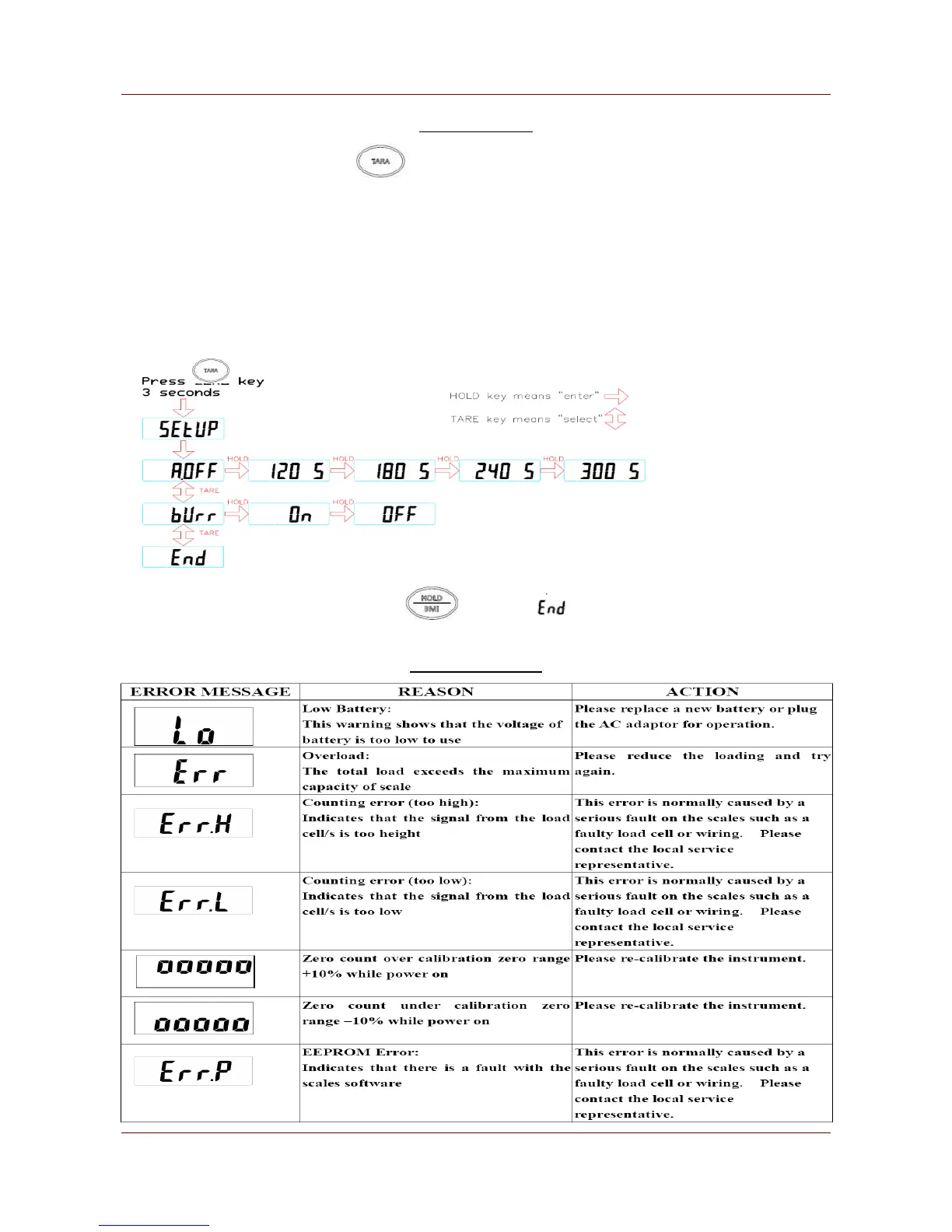 Switch ON the scale and long press key for 3 seconds, first “SETUP” and then “A.OFF” will display