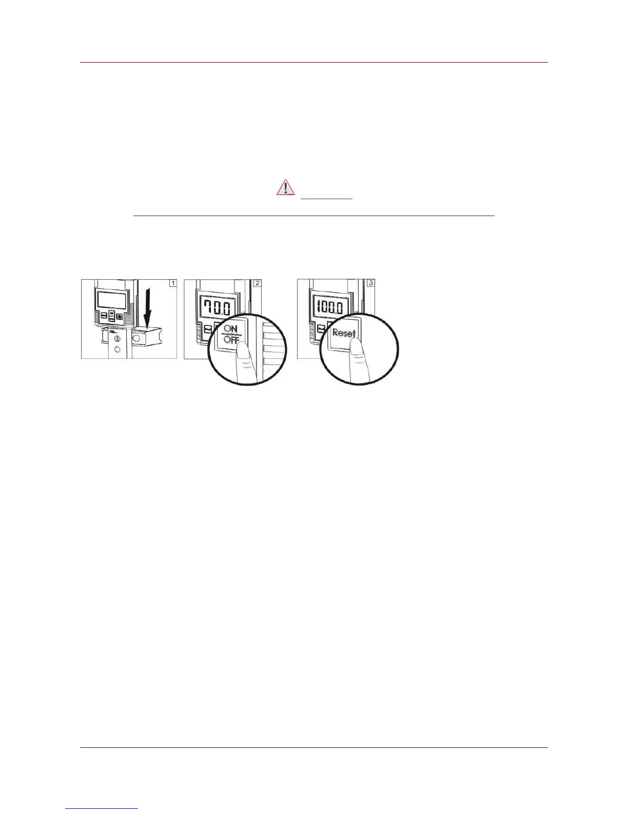 Make indicator move to the end of measuring rod. Then switch ON and press reset key once to calibrate.