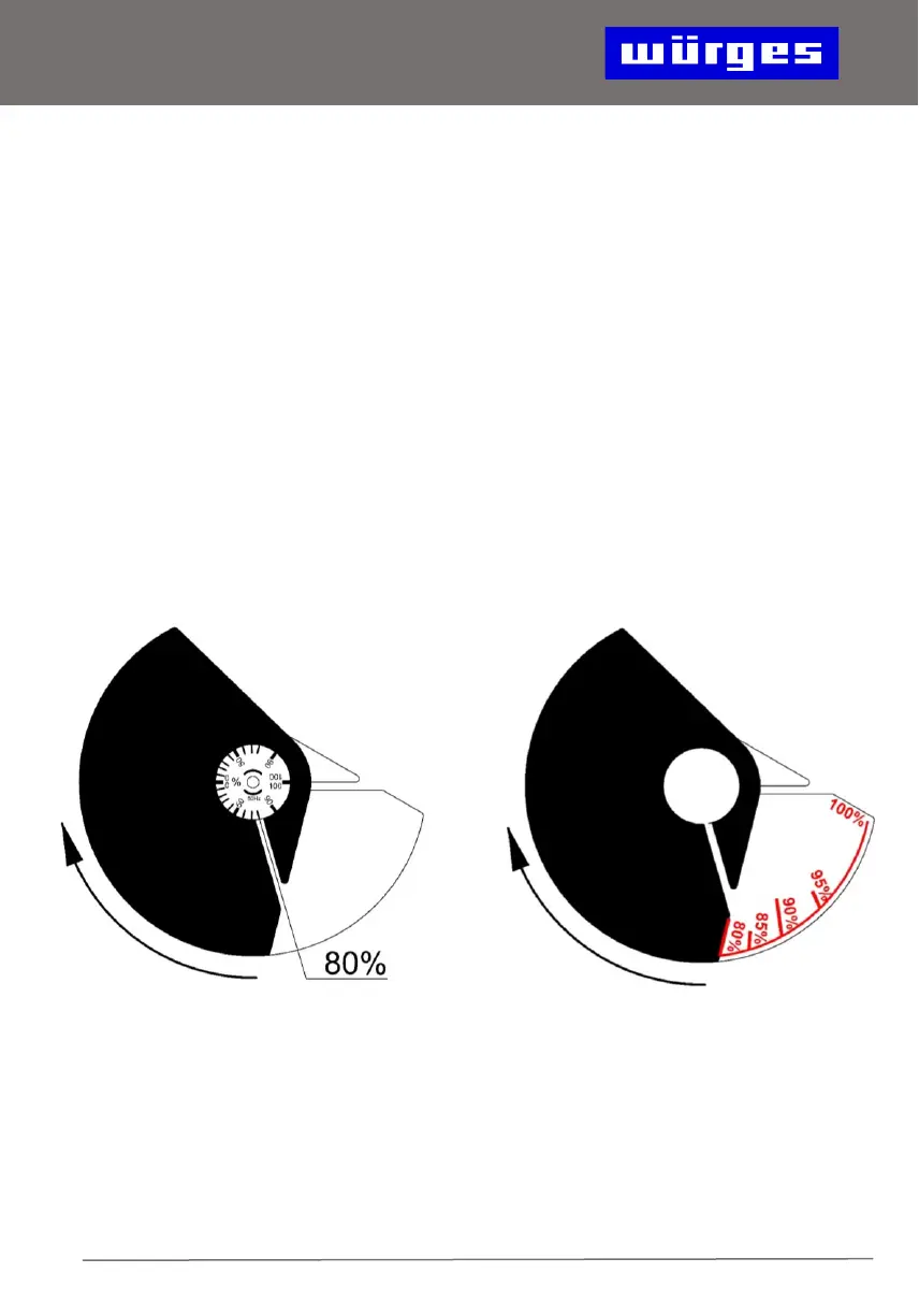 a) auf der Skala auf der Welle ablesen. Ein Teilstrich entspricht 10%.