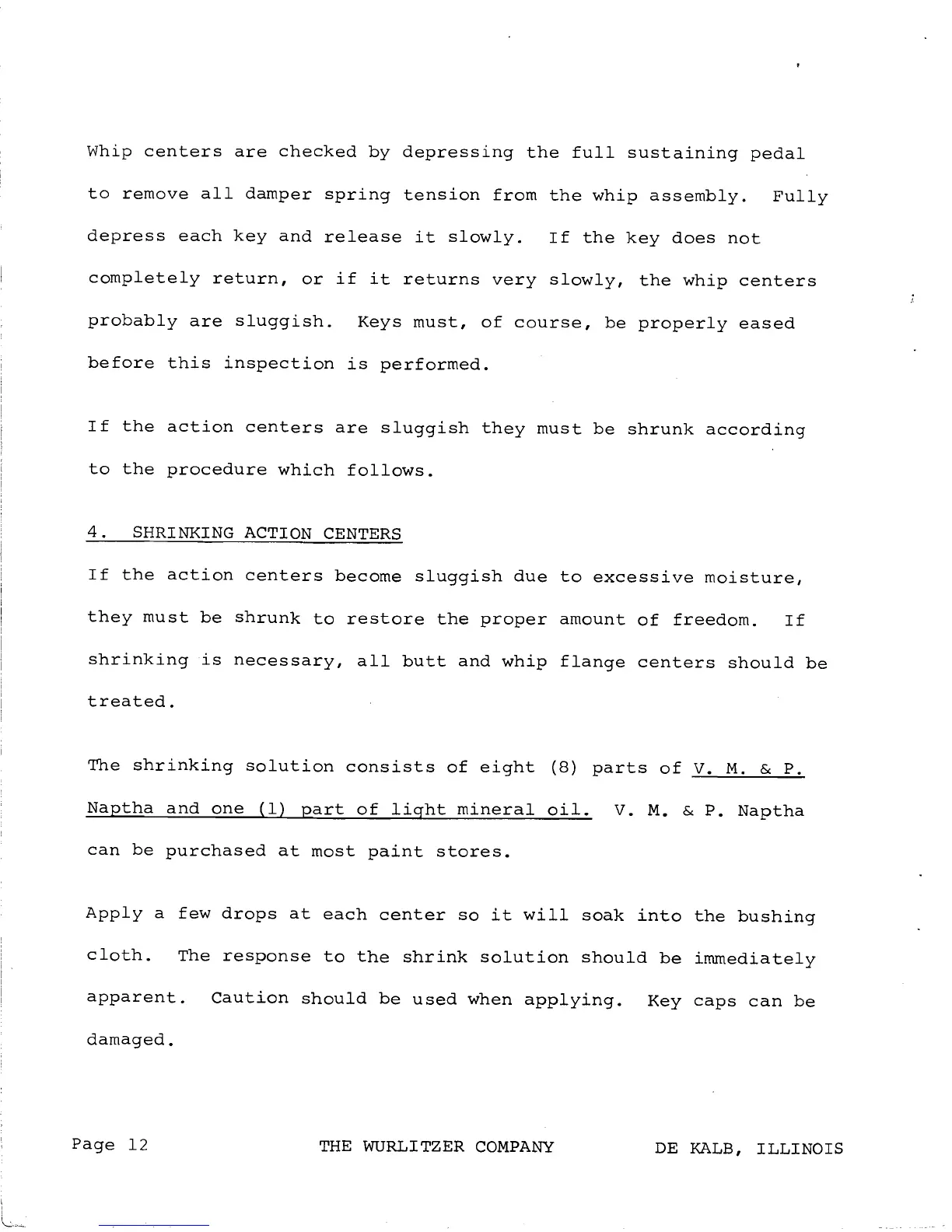 Wurlitzer 140 - Shrinking Action Centers