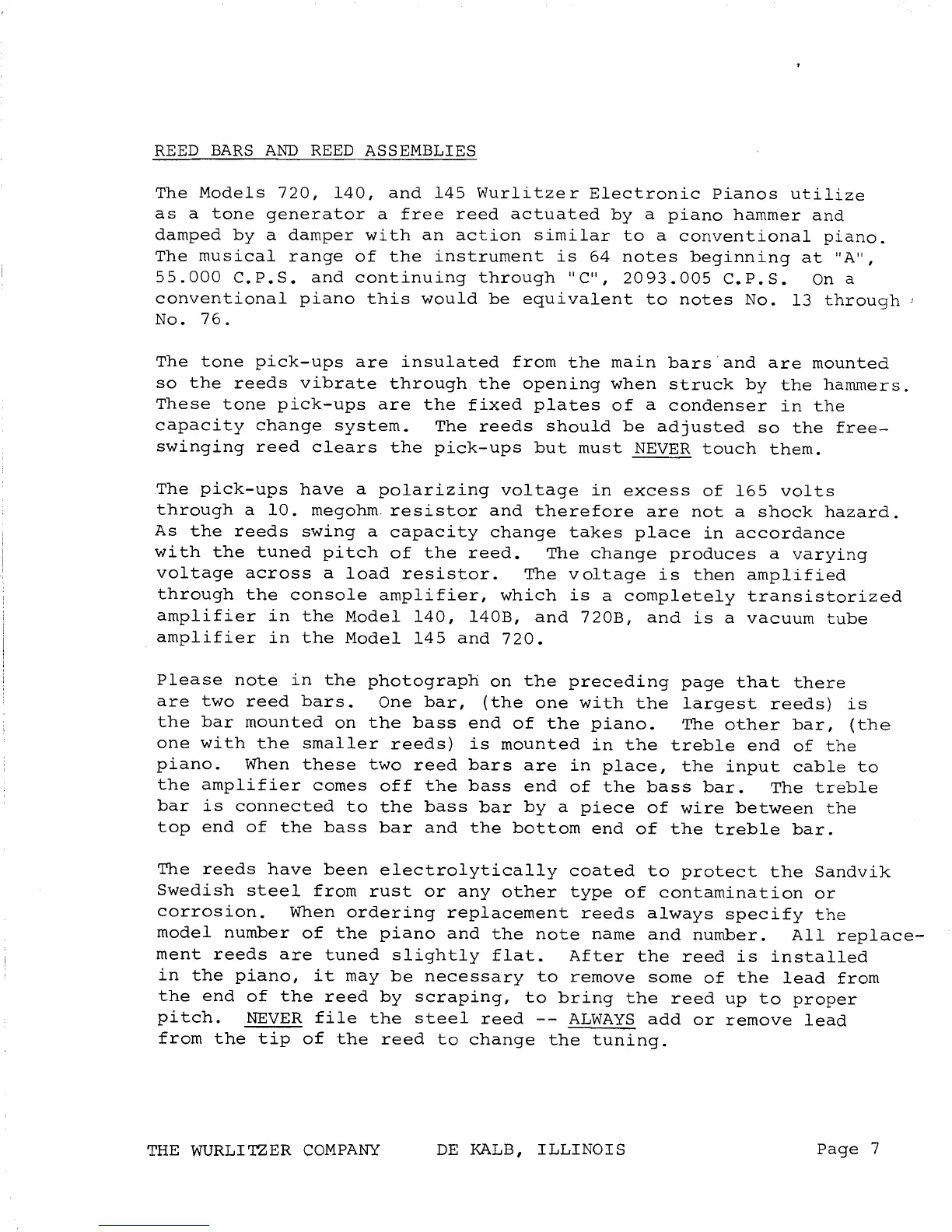 Wurlitzer 140 - Reed Bars and Reed Assemblies