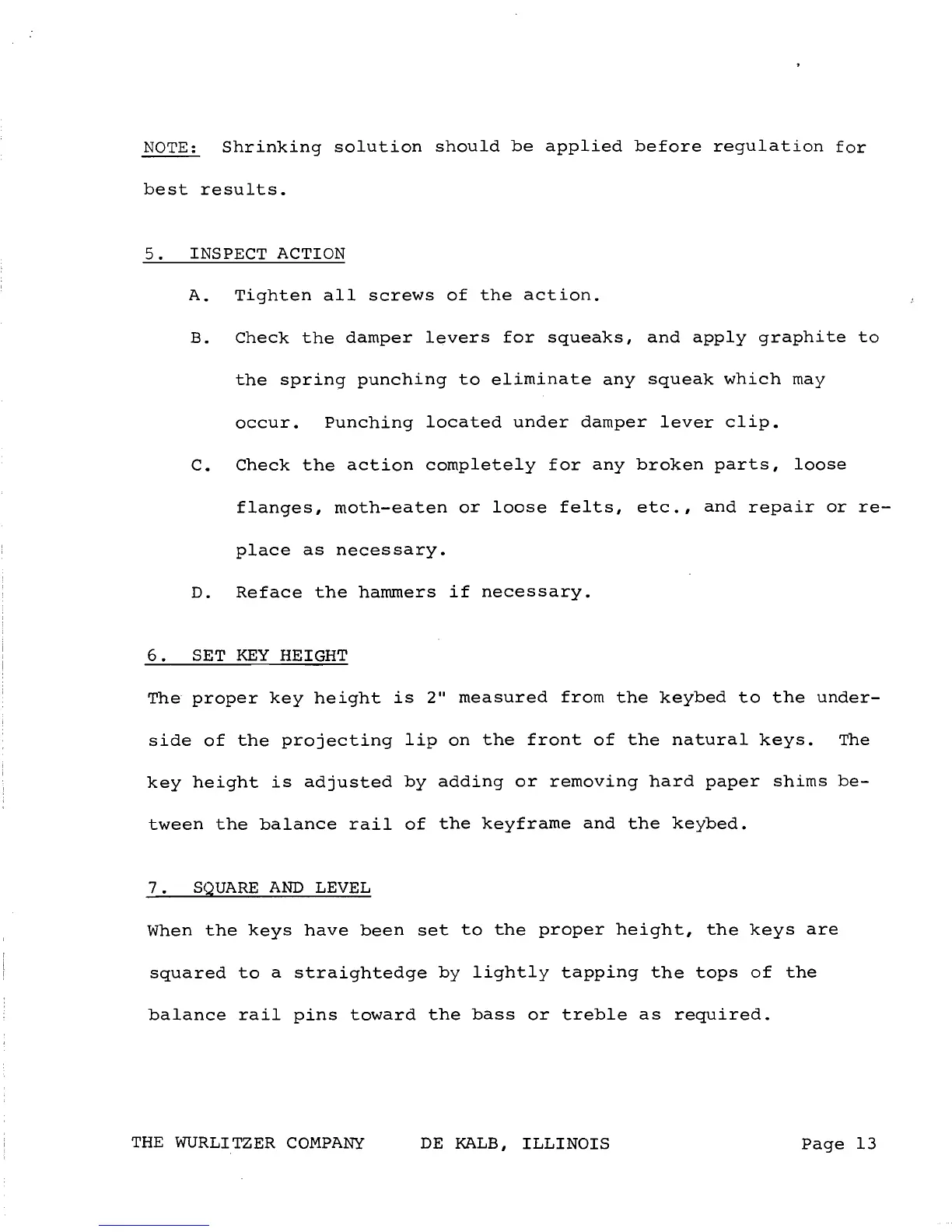 Wurlitzer 145 - INSPECT ACTION; SET KEY HEIGHT; SQUARE AND LEVEL