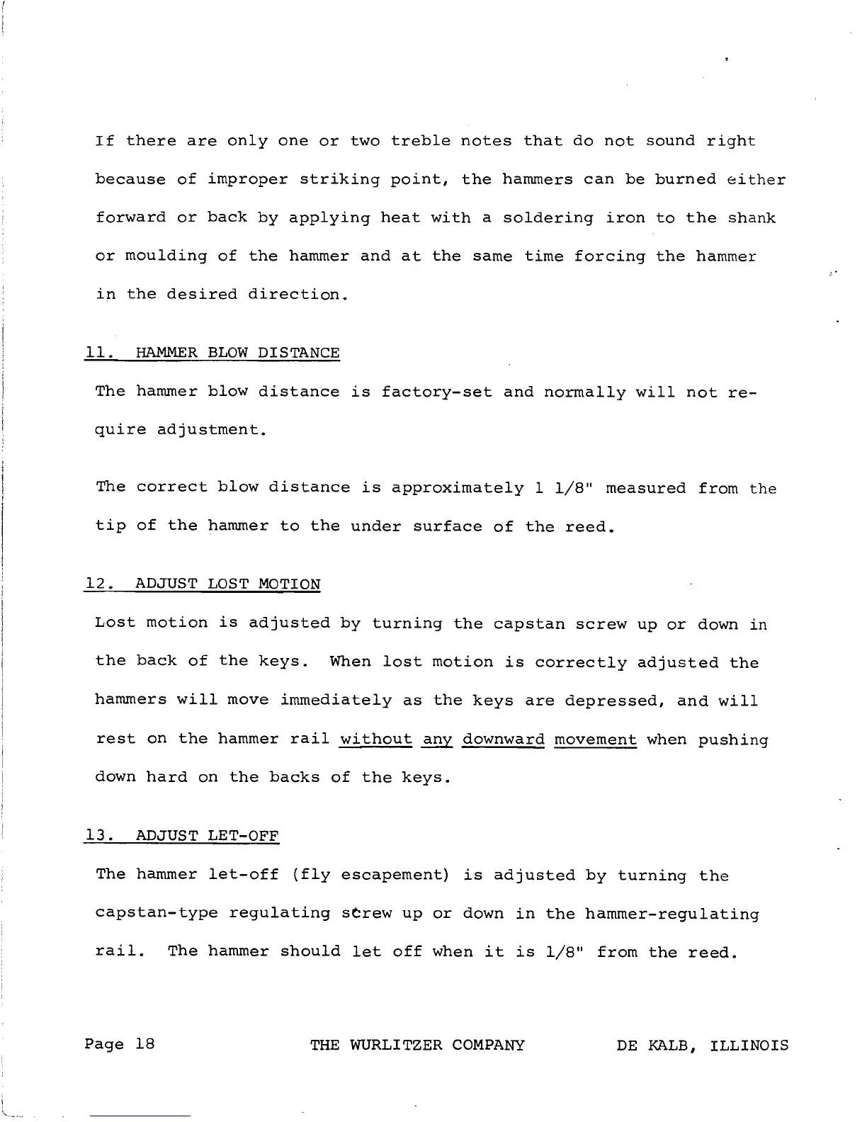 Wurlitzer 145 - Hammer Blow Distance; Adjust Lost Motion; Adjust Let-Off