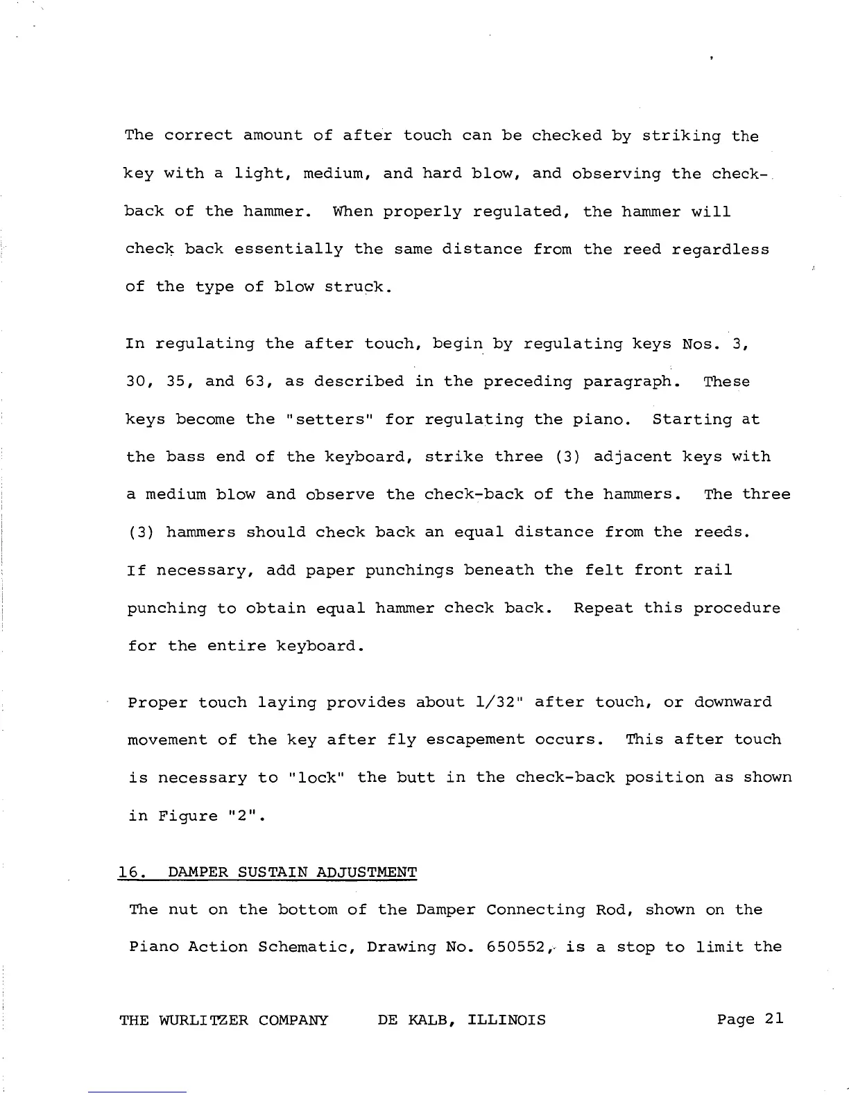 Wurlitzer 145 - DAMPER SUSTAIN ADJUSTMENT