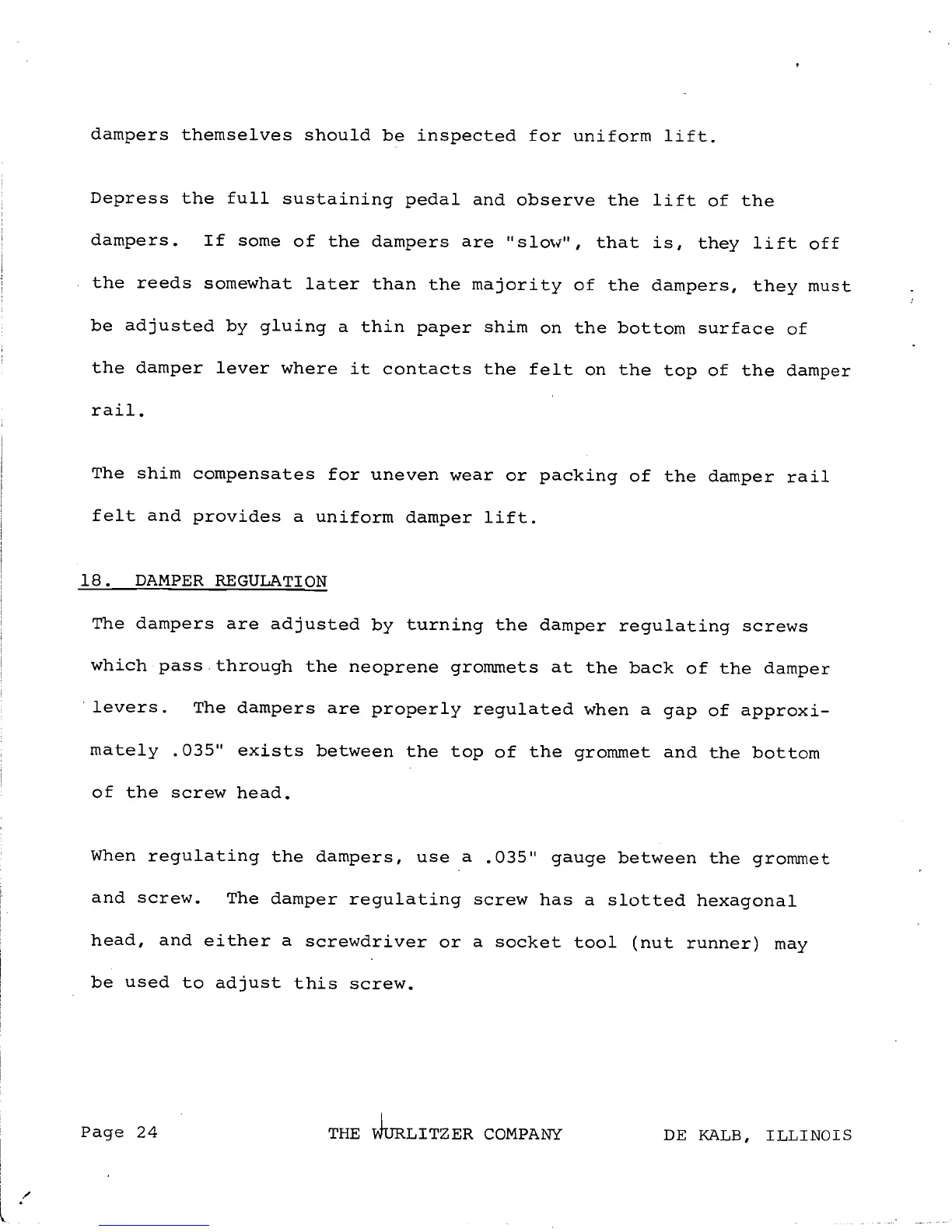 Wurlitzer 145 - DAMPER REGULATION