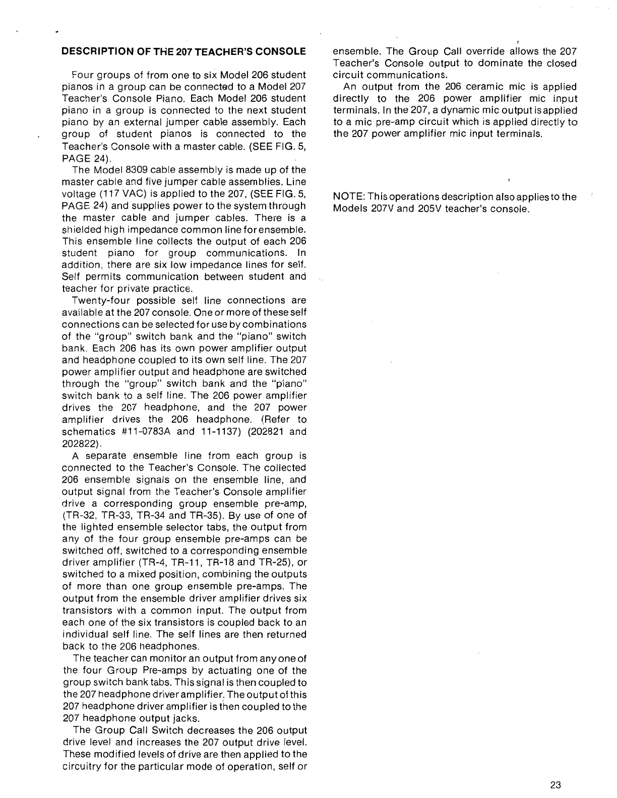 Wurlitzer 200A - 207 Teachers Console Description; Ensemble Connections and Operation