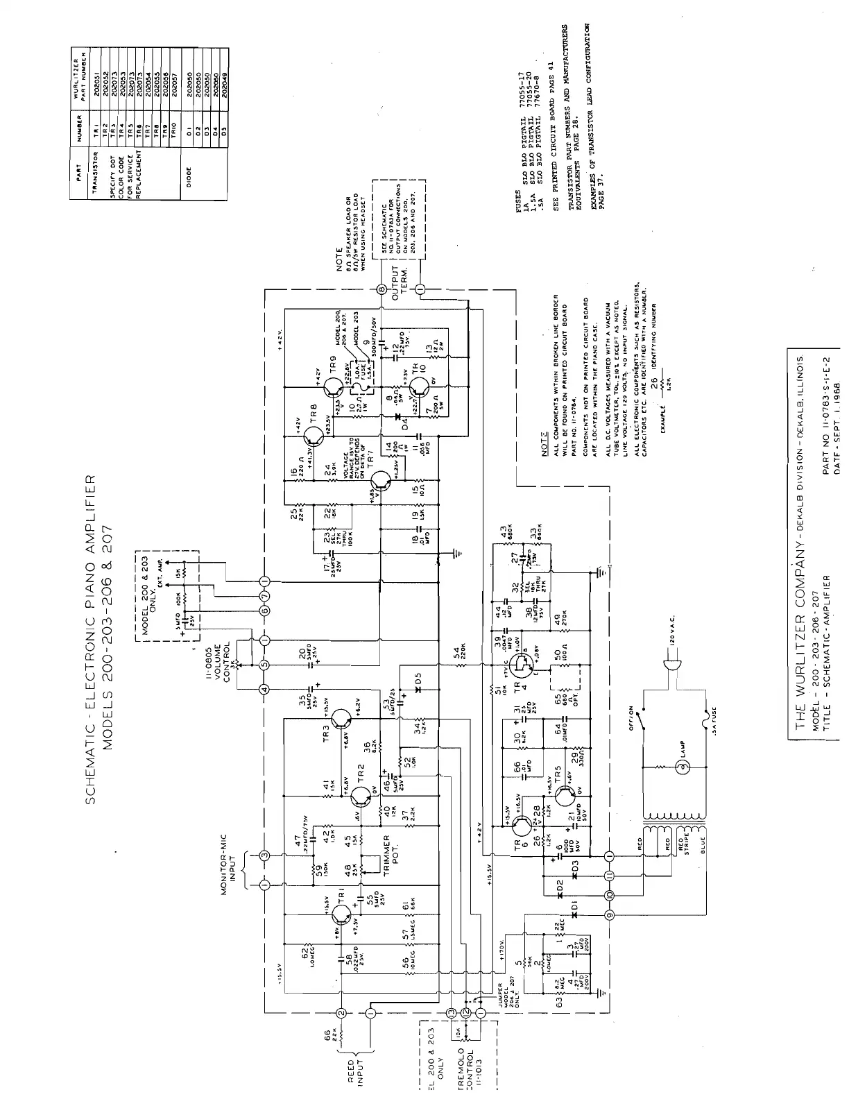 Wurlitzer 200A - Schematic: Electronic Piano Amplifier (Models 200-203-206 & 207)