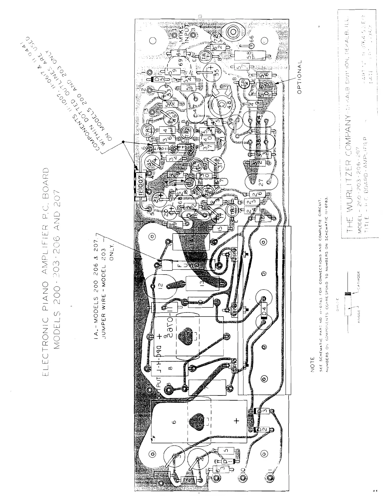 Wurlitzer 200A - P.C. Board Diagram: Amplifier (Models 200-203-206 & 207)