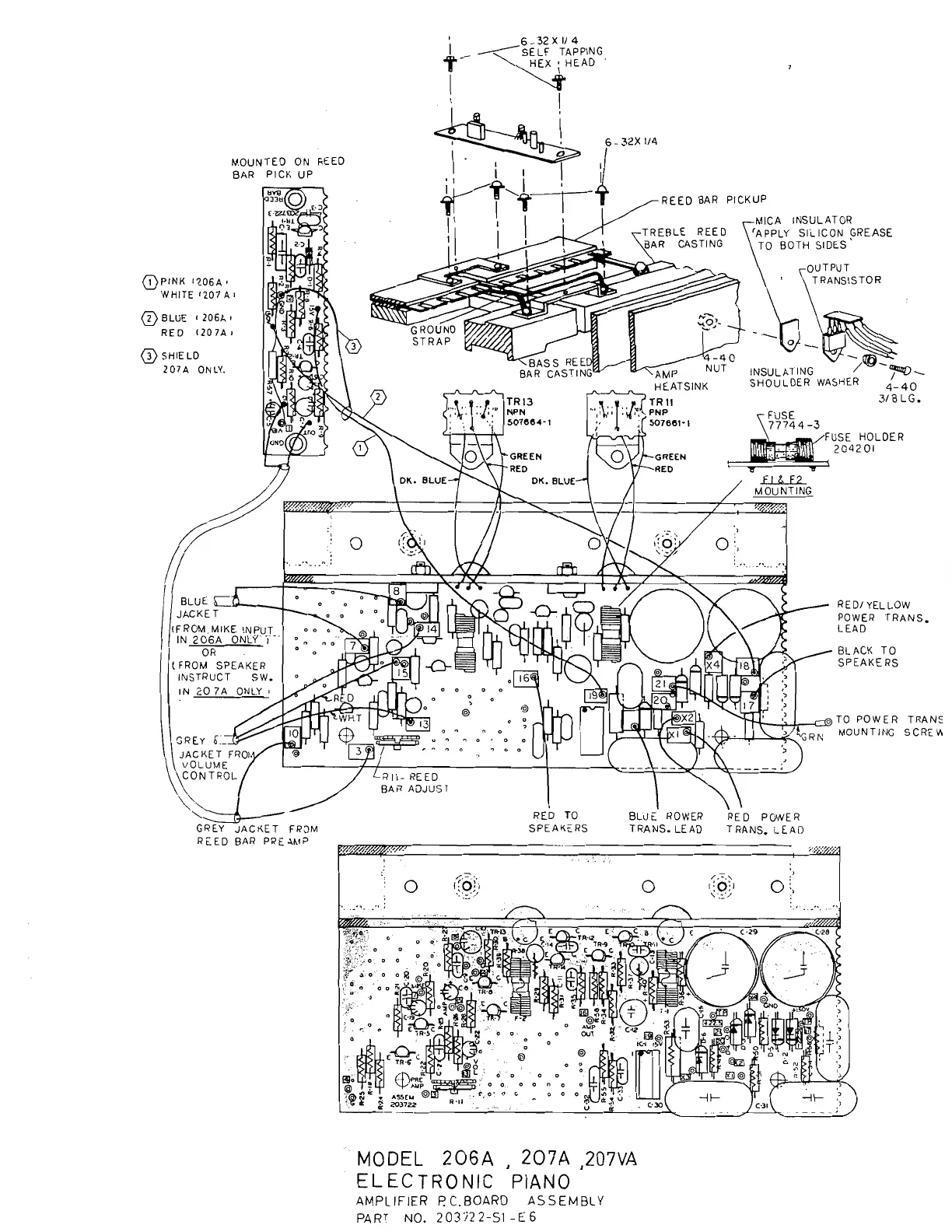 Wurlitzer 200A - P.C. Board Assembly Diagram: Models 206 A, 207 A, 207 VA Amplifier