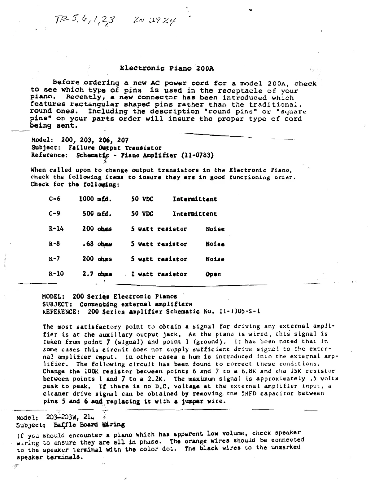 Wurlitzer 200A - Electronic Piano 200 A: Output Transistor Failures; Output Transistor Failure Checks