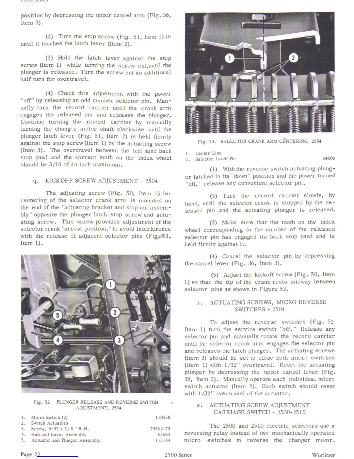 Wurlitzer 2500 - STOP AND KICKOFF SCREW ADJUSTMENTS