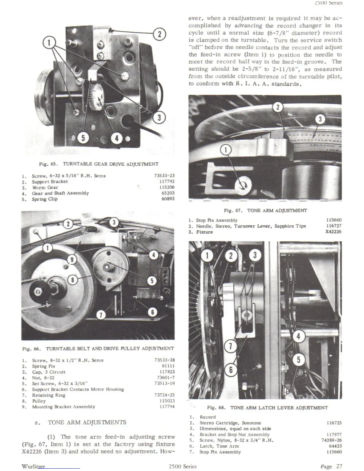 Wurlitzer 2500 - NEEDLE PRESSURE ADJUSTMENT