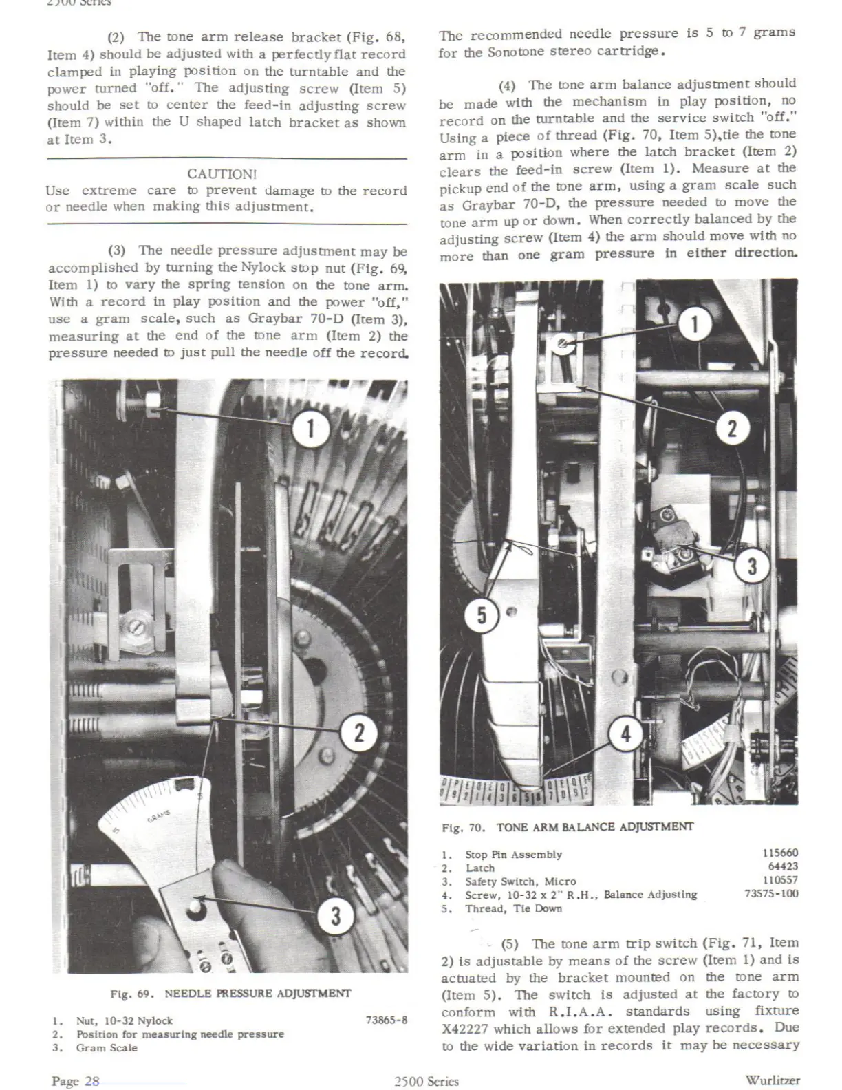 Wurlitzer 2500 - TONE ARM BALANCE ADJUSTMENT