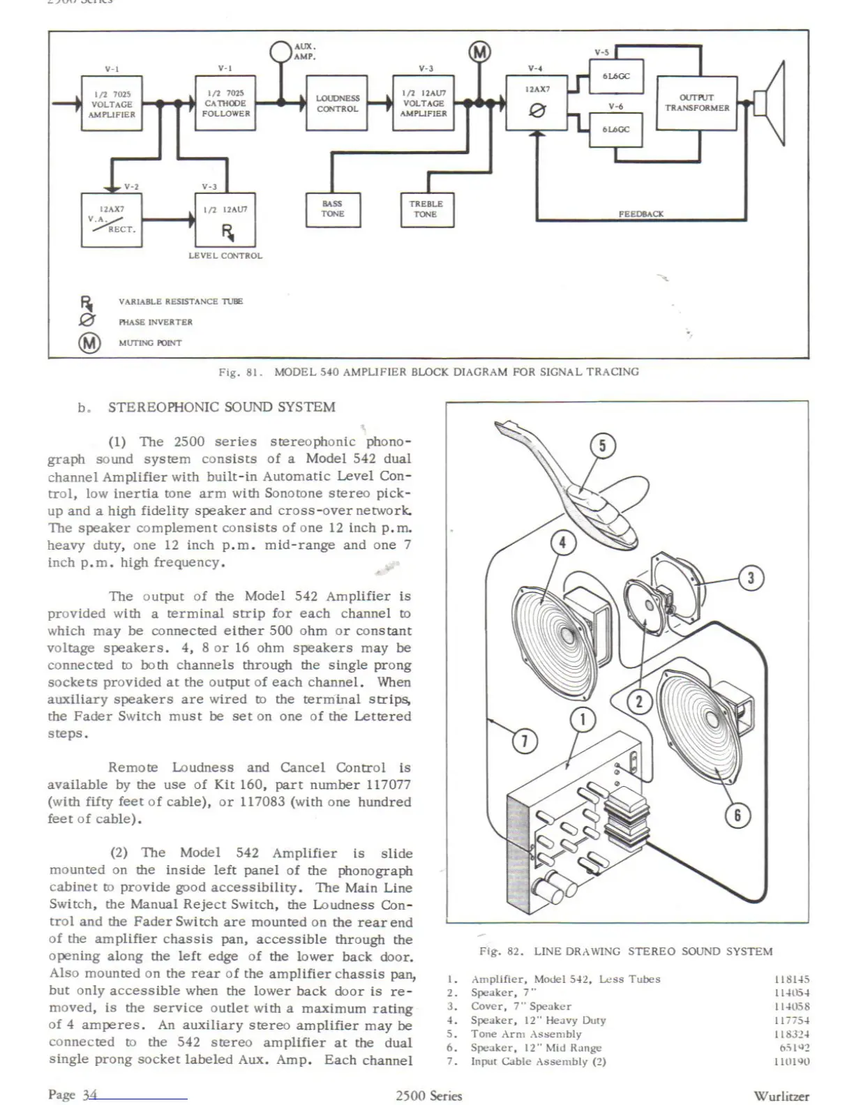 Wurlitzer 2500 - MODEL 542 AMPLIFIER BLOCK DIAGRAM
